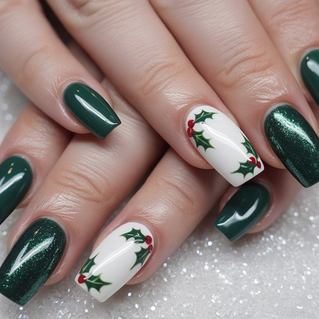 7. Glamorous Green with Holly Accents