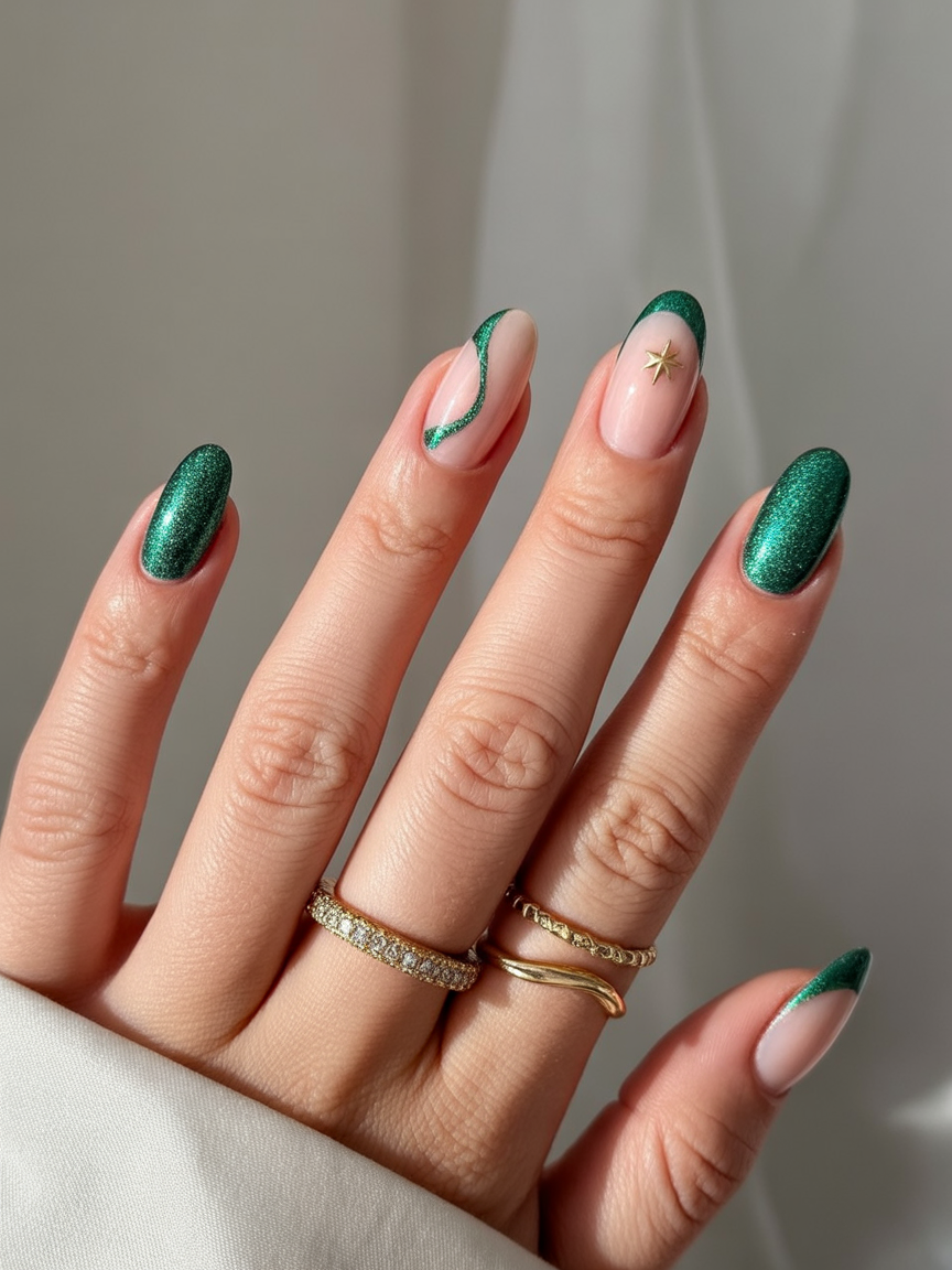 This one is fabulous for almond or stiletto shapes, especially if you dig elongated designs. The deep green polish paired with simple nude accents means that it’s going to mix and match fabulously with almost any outfit. A little less conventional and more playful for 2025—making your nails this season’s star.