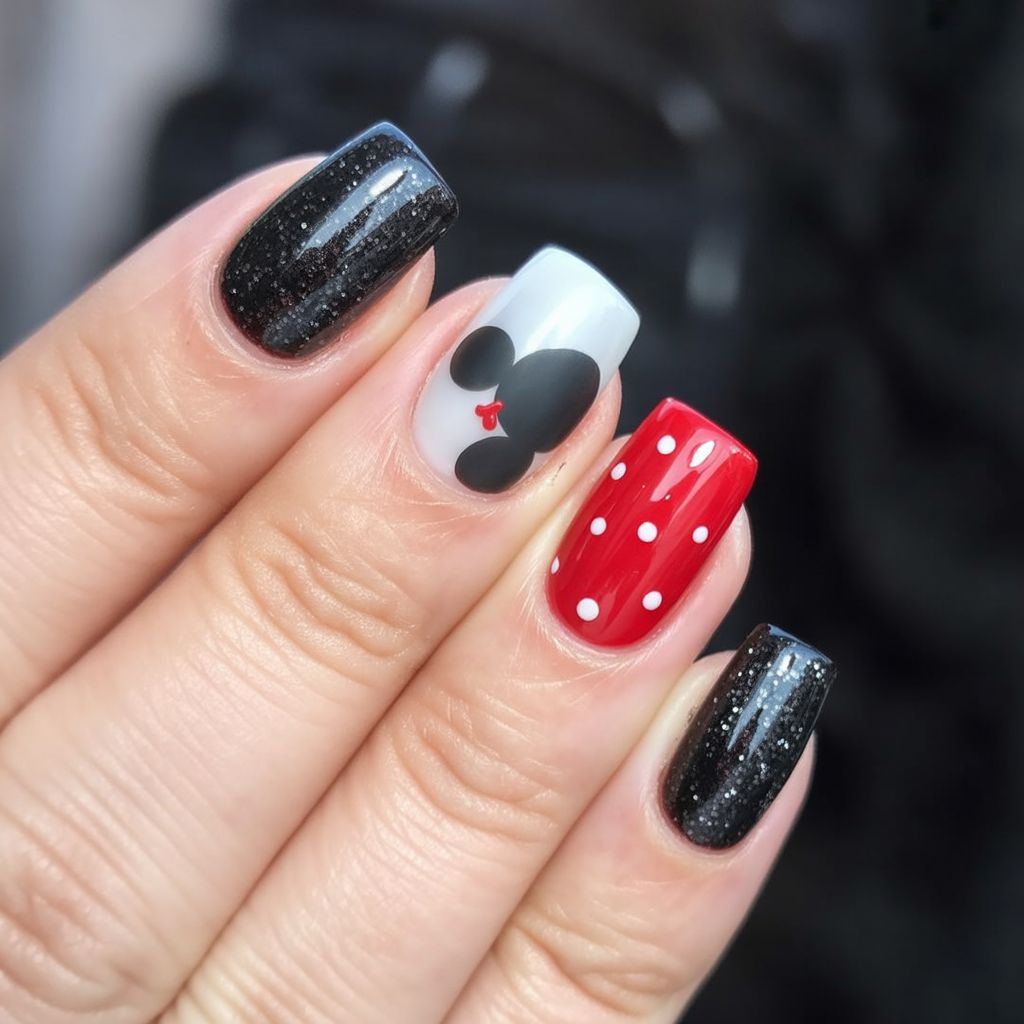 Channel your inner Disney princess with this adorable Minnie-inspired manicure. The playful mix of red, white, and black gives instant character, while the cute bow and dots make it unmistakably magical. It’s the kind of nail art that sparks joy the second you see it—a perfect mix of nostalgic charm and modern polish.