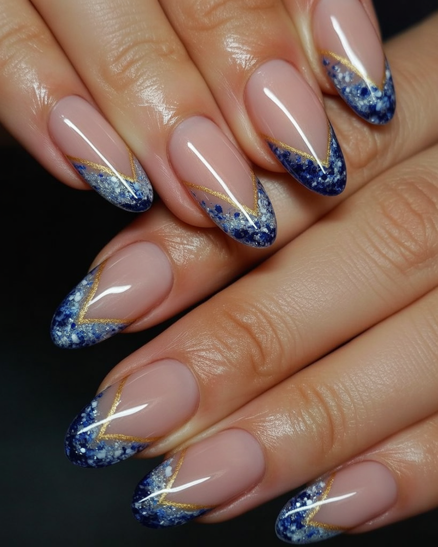 The classic French meets royal fantasy nail look is where classic meets royal fantasies. This look has a nude finish that complements blue tips, embodying pure class. This look is so elegant that it doesn’t need too much effort to nail it. These gel nails are perfect for those who love a modern twist on traditional French tips. Ideal for special occasions or everyday wear, the blue hue gives a princess-worthy vibe while staying neutral enough for work. Easy to love, easy to wear, and endlessly elegant.