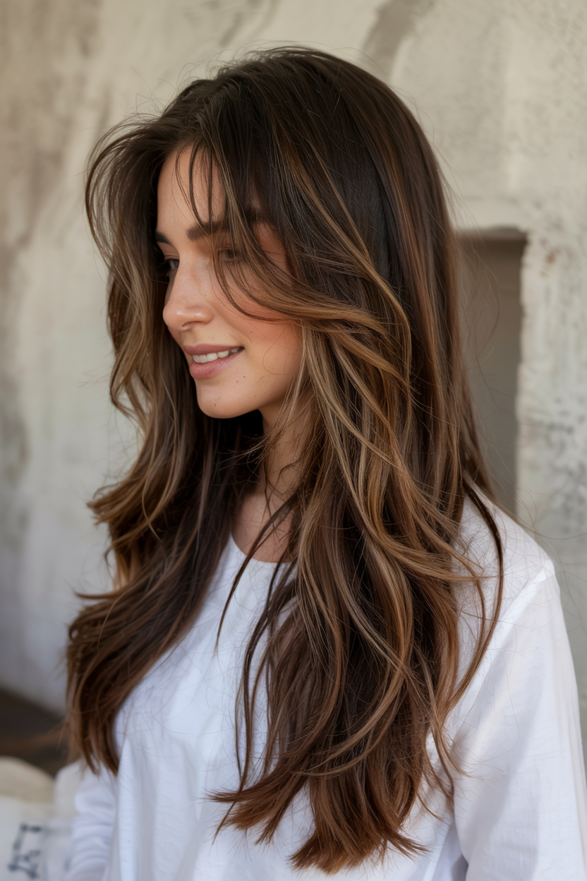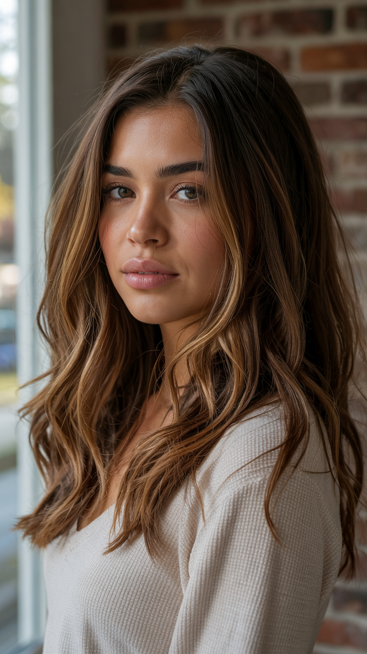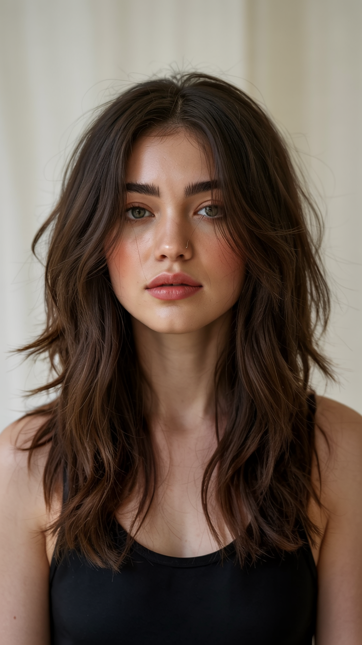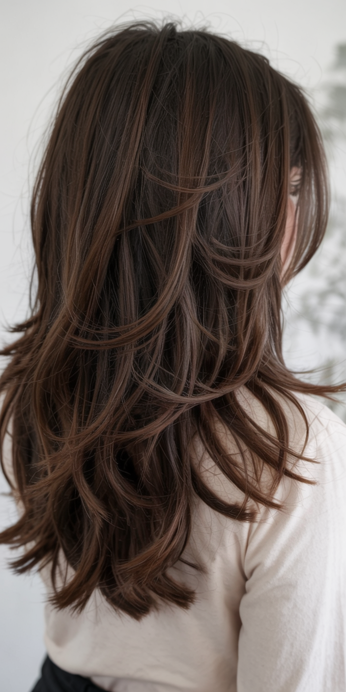 Talk about rocker-chic meets elegance. The style is suited to the woman who desires motion, texture and a little sass. The wispy bangs give out soft strokes and all the body is taken by the layered waves. It is a type of appearance that makes one acknowledge to that spontaneous dinner party.