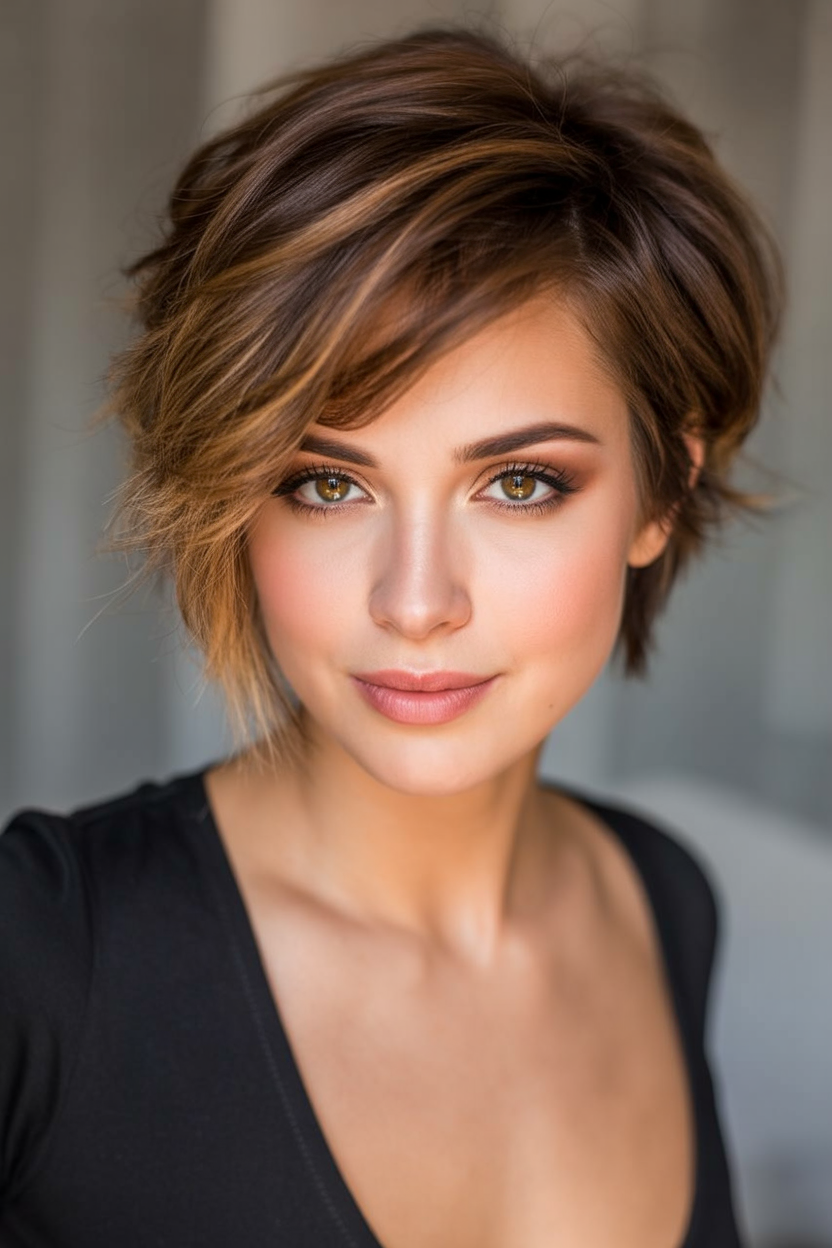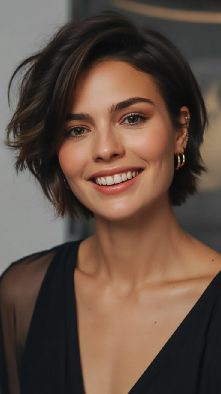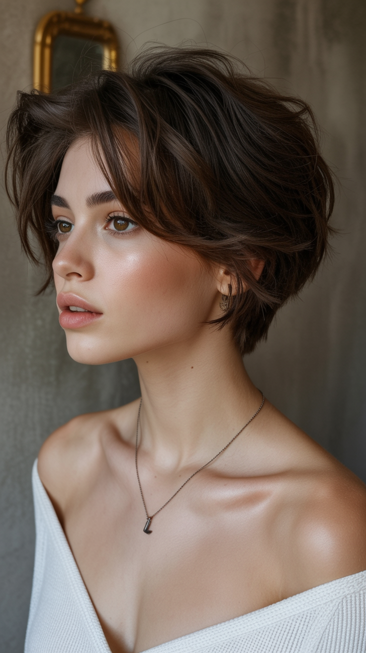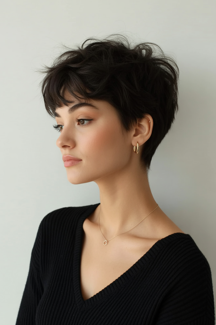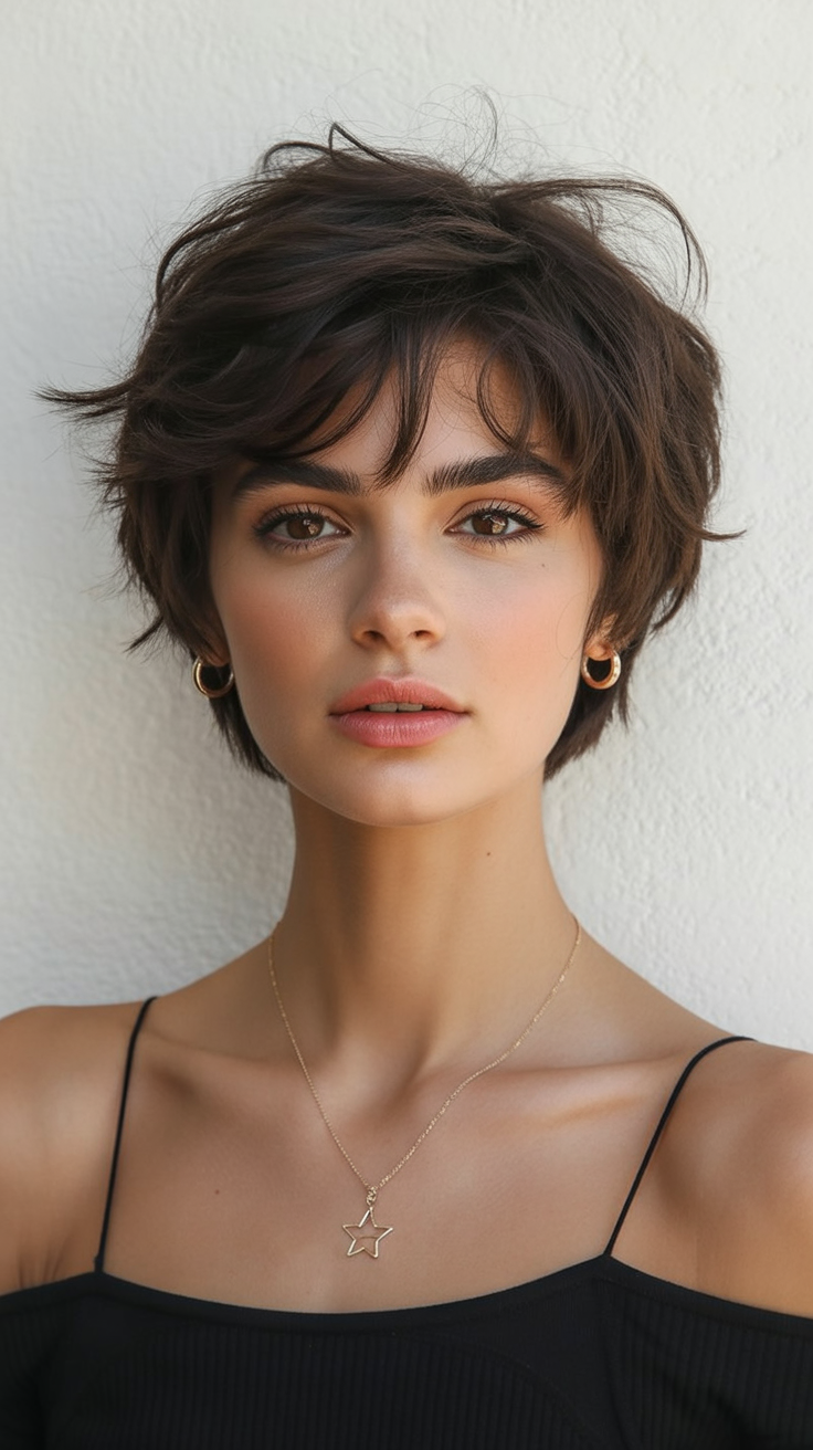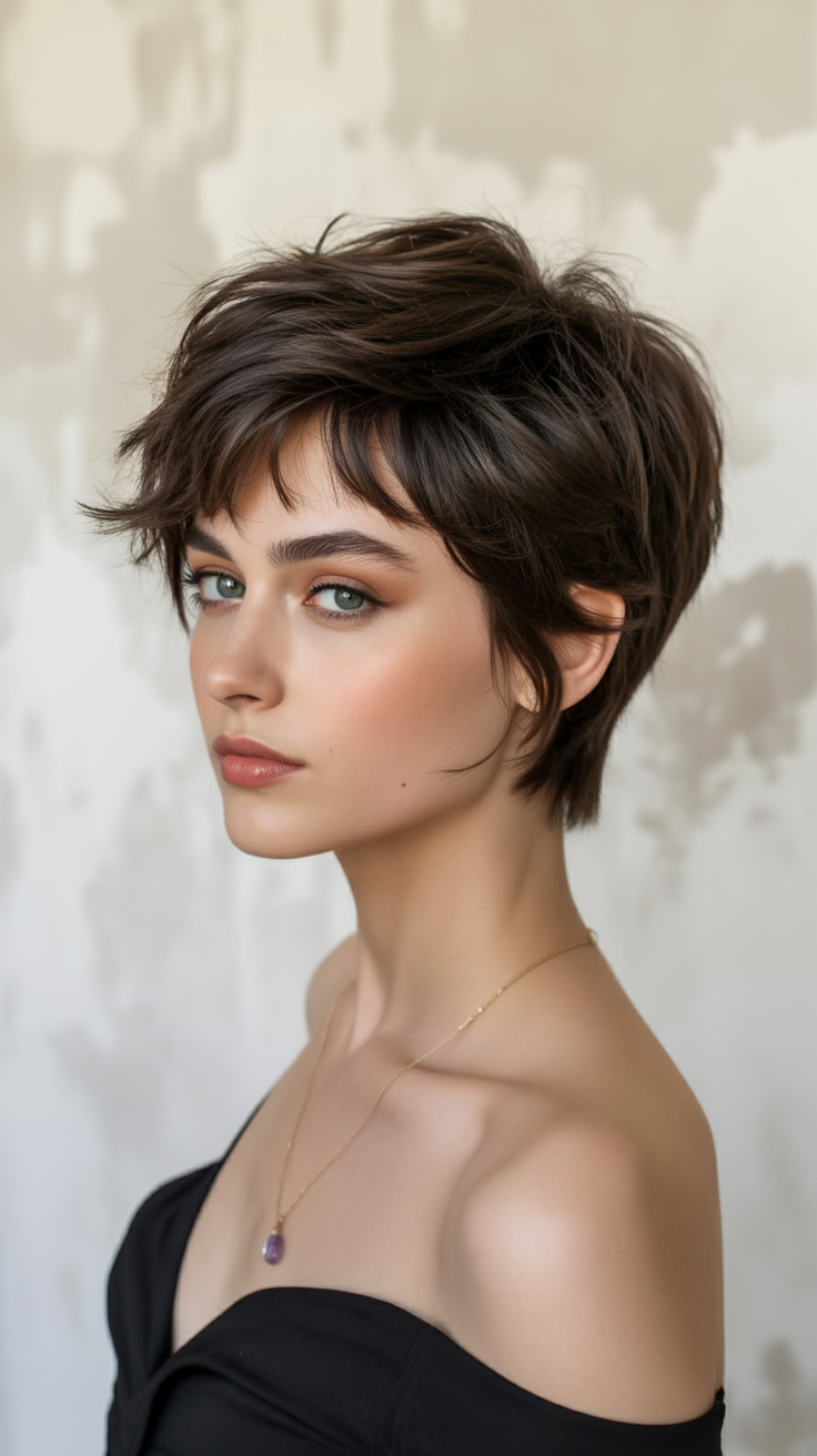 Compared to sleeker pixies, this one thrives on imperfection. Women with thick hair will like that it lightens density and thin fine hair women will enjoy the sight of thicker hair. The current trend with hair in 2025 is more oriented towards lived-in texture so this is one of the freshest go-to hair cuts that’s been No.1 on a stylish lifestyle-confident women who want their hair to look like it always looks effortlessly cool.