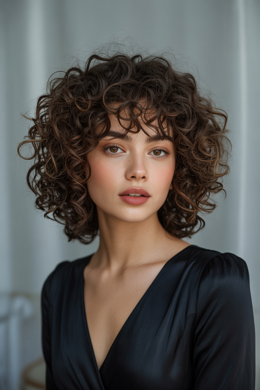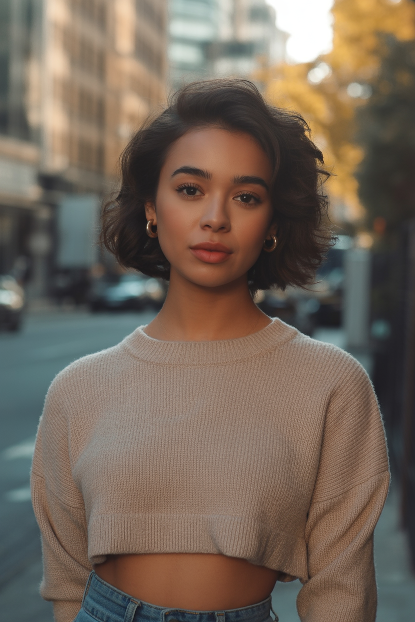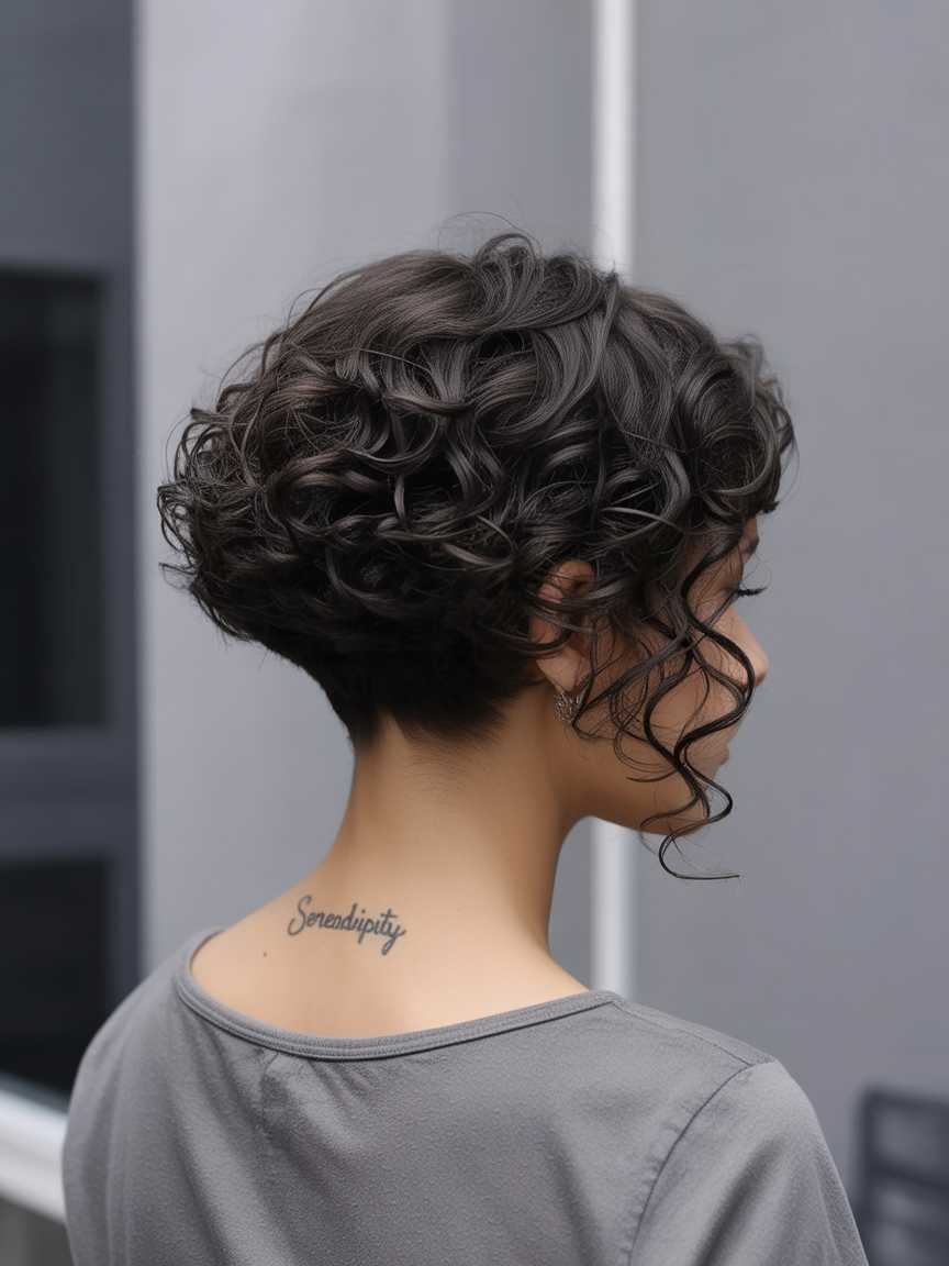 Such a short curly pixie bob proves to be the optimal combination of order and gentleness. The volume and already familiar style are accentuated by the curls in it, and the bob length ensures it is stylish and easy to maintain. It is airy, young, and spirited- not only appealing during casual wear but also when it is dressed up.