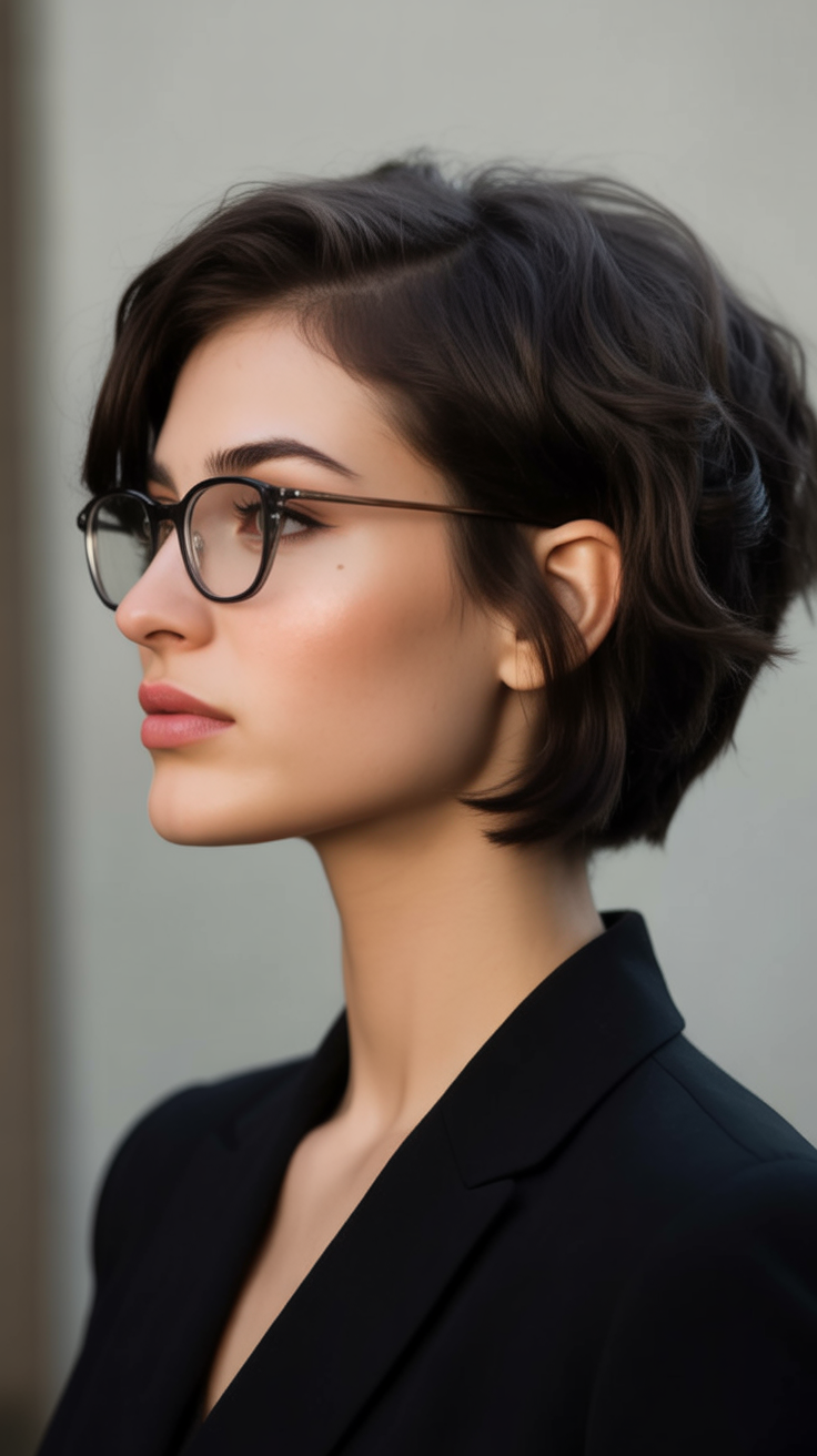 There’s something instantly empowering about a sleek, side-parted pixie. They are presented with silent confidence, refined and yet friendly with an edge of contemporary elegance. When combined with glasses or other bold pieces, it can easily be transitioned between office and after work dinner date with ease, and hold its own style. It is the pixie cut of feminine style owners who prefer their style witty but never rigid.
