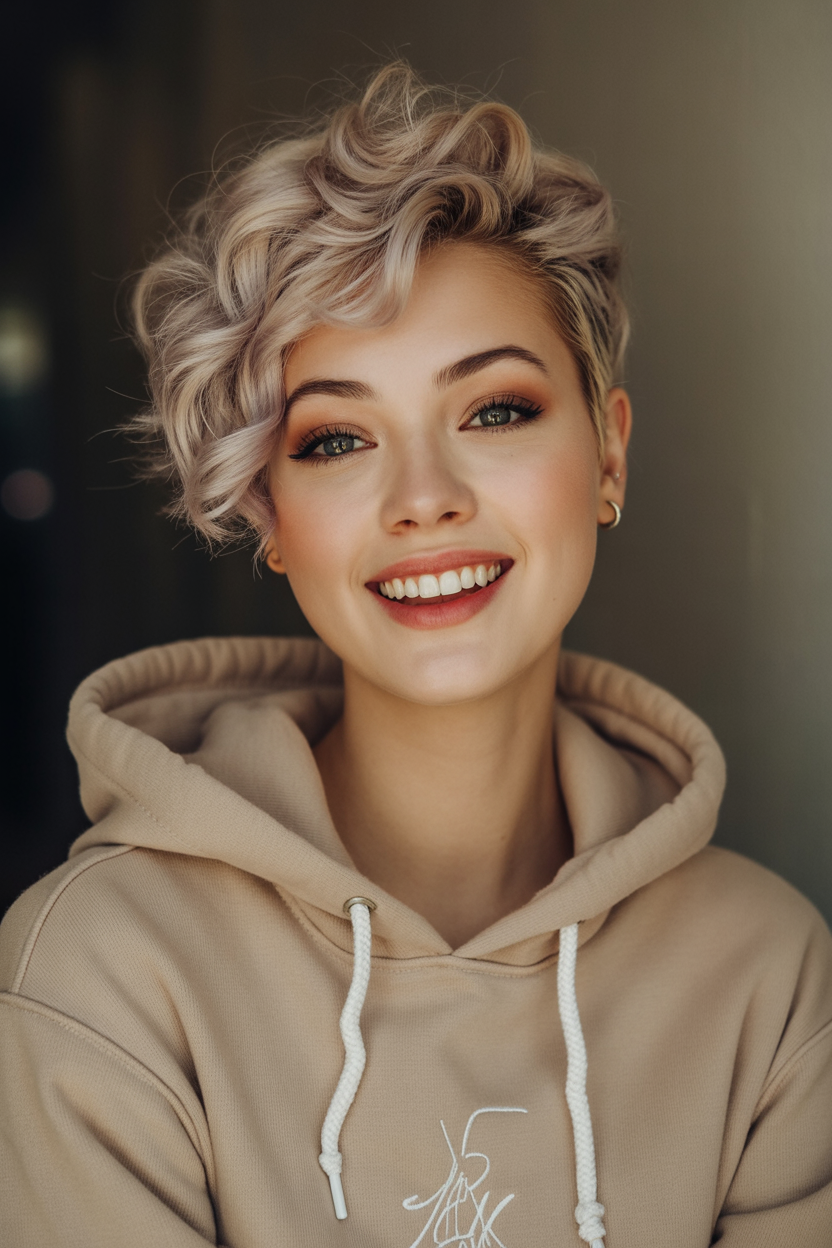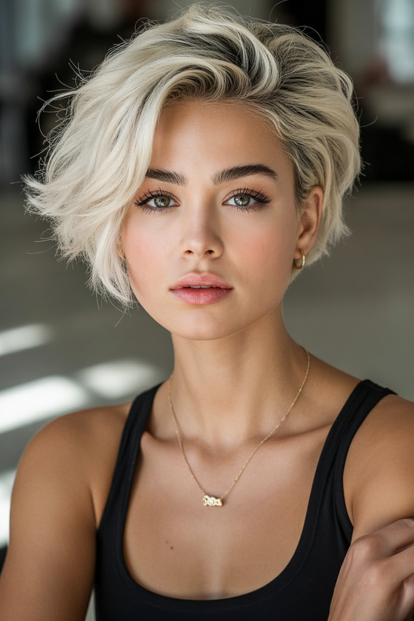 The cut is best on thick hair edgy types because the volume provides structure and dimension. However, you need not worry about having fine hair, however, because the perfect texturizing spray can make it work wonderfully. Platinum blonde is one of the latest trends in hair color in 2025 and as such a pixie is the ideal combination to remain stylish without losing convenience. Some quick spray of covershot roots and you can be moving between coffee date and cocktail hour in a flash.