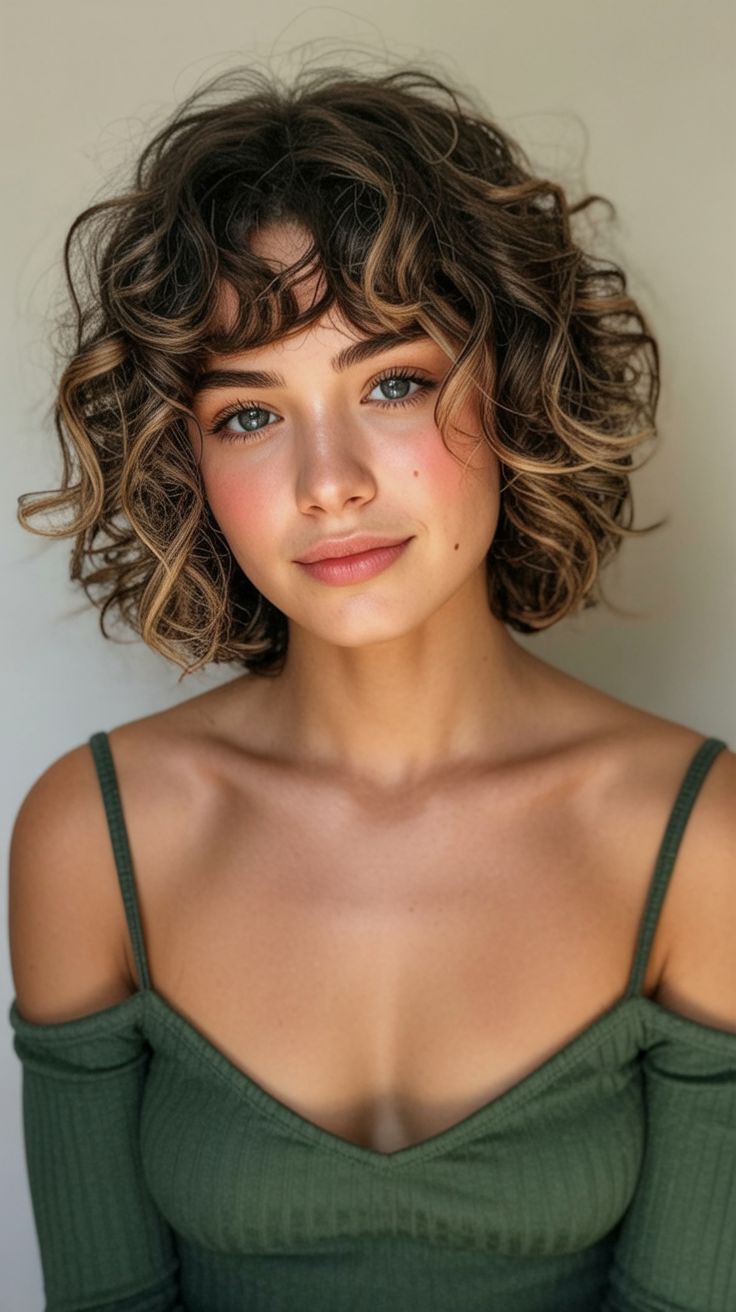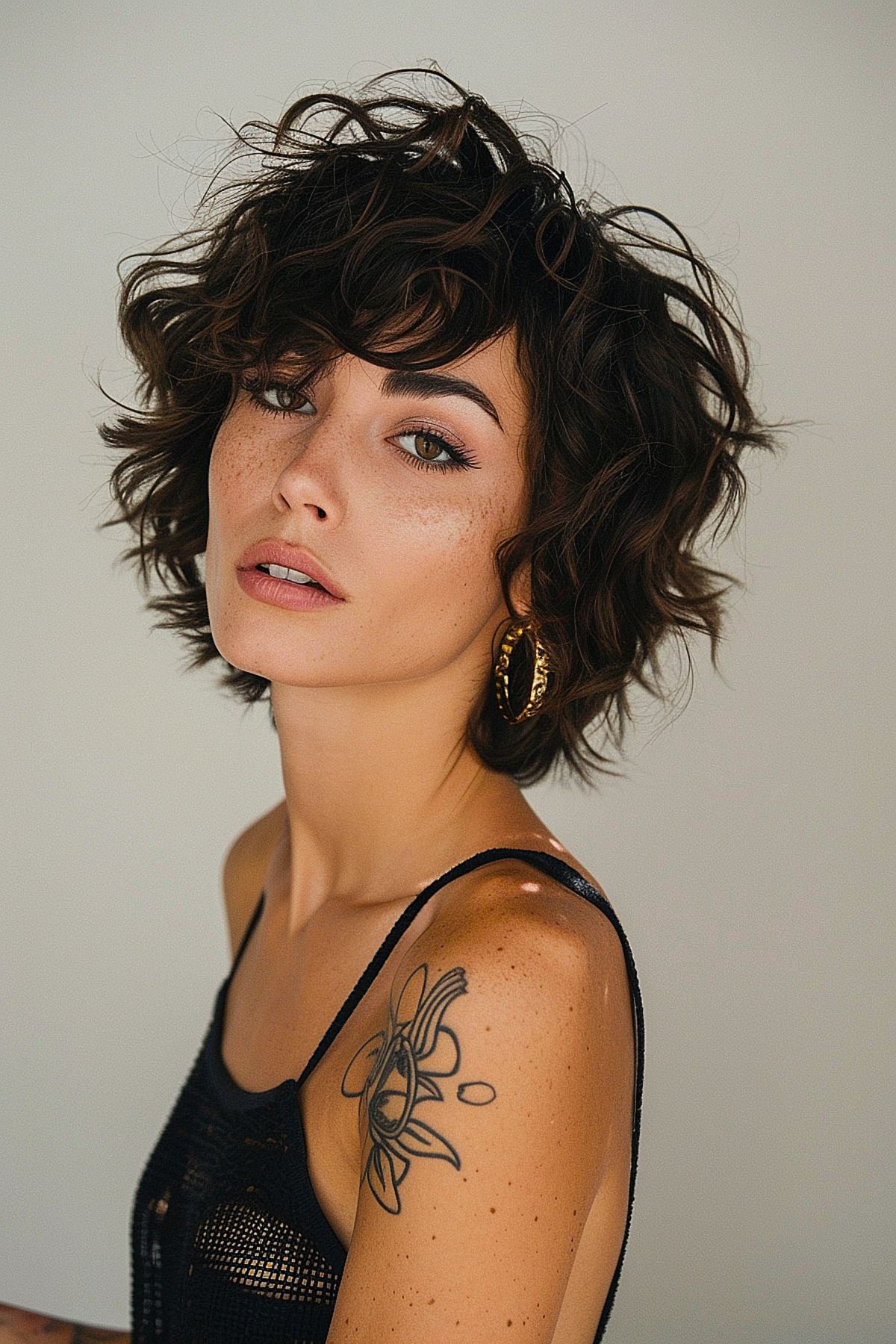 If you’ve ever wanted that effortless “just woke up like this” glam, this tousled French pixie is calling your name. The trendy sculptural curls accentuate the face making it look both wild and cultivated, the person that can feel her style but does not need to scream it out. There’s a romantic, playful energy here, enhanced by the piecey texture that brings flirty movement and an artistic edge.