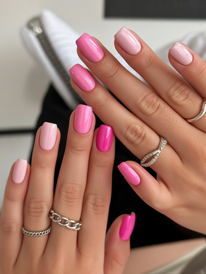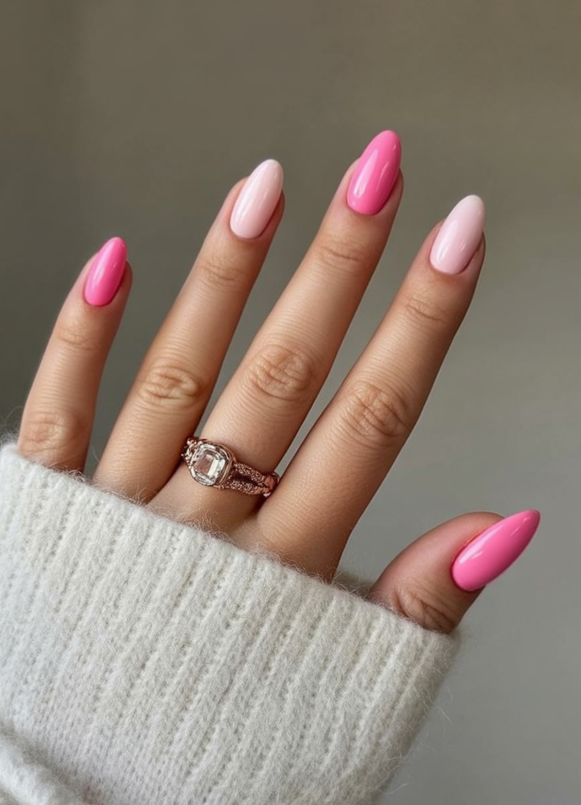 This manicure feels like stepping into a sweet, carefree moment — soft blush and bright bubblegum pink balancing each other with that playful, feminine charm we all secretly adore. It’s light, vibrant, and instantly uplifting, like throwing on your favorite cozy sweater and rosy lipstick. There’s something effortlessly cute about pairing two soft tones together — no glitter, no high drama, just joyful simplicity that still feels chic and intentional.
