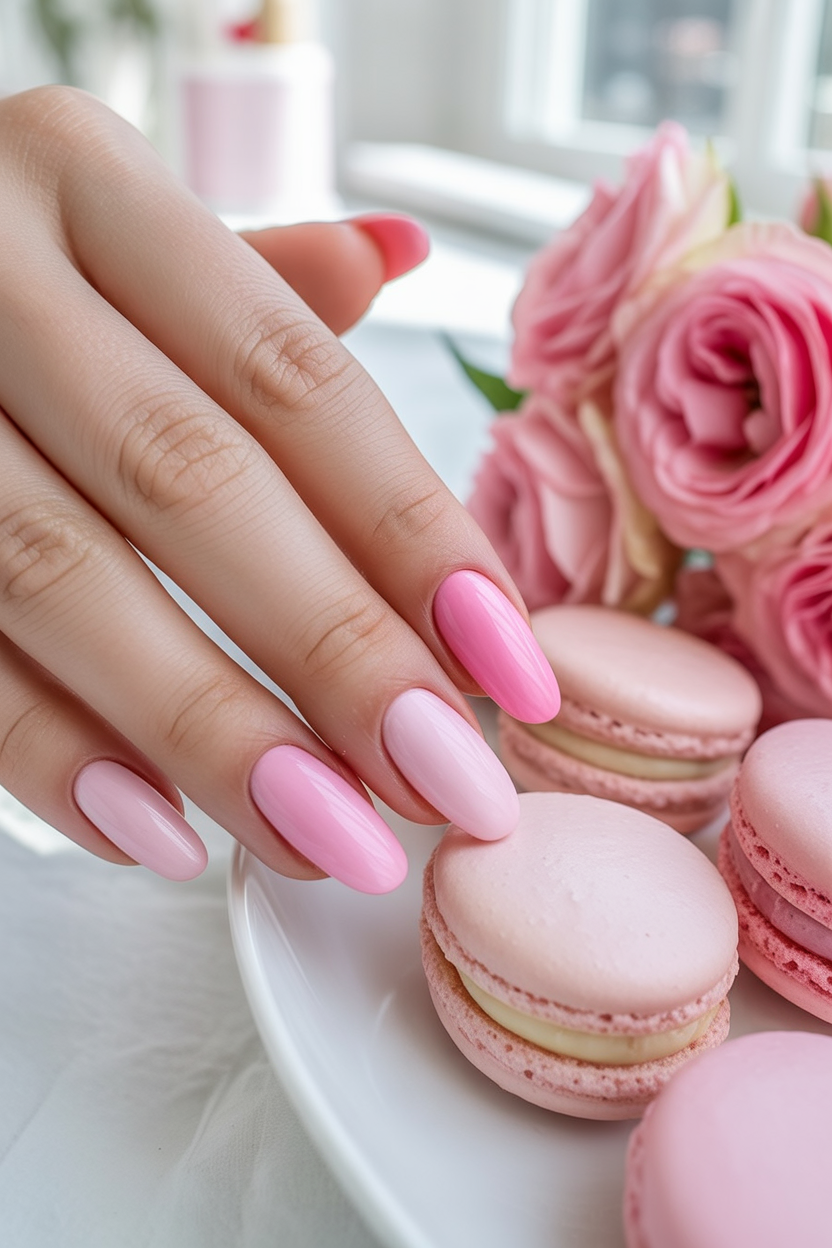 Soft, creamy shades of pink paired with round almond nails give the sweetest, almost dessert-inspired finish — like macarons and blush roses wrapped into one dreamy manicure. It feels romantic, light, and feminine without being too precious. Think brunch dates, cozy weekends, and that effortless “I take good care of myself” energy.