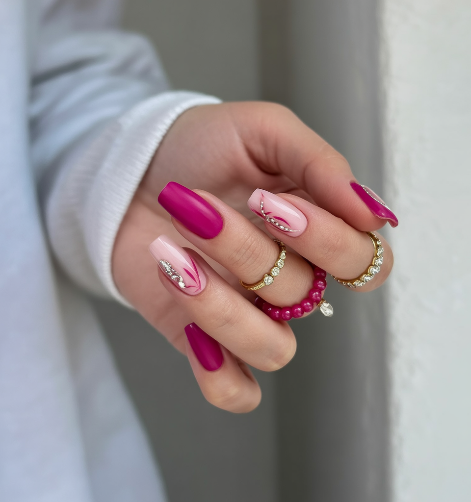 9. Matte & Gloss Pink Square Mix with Crystal Art