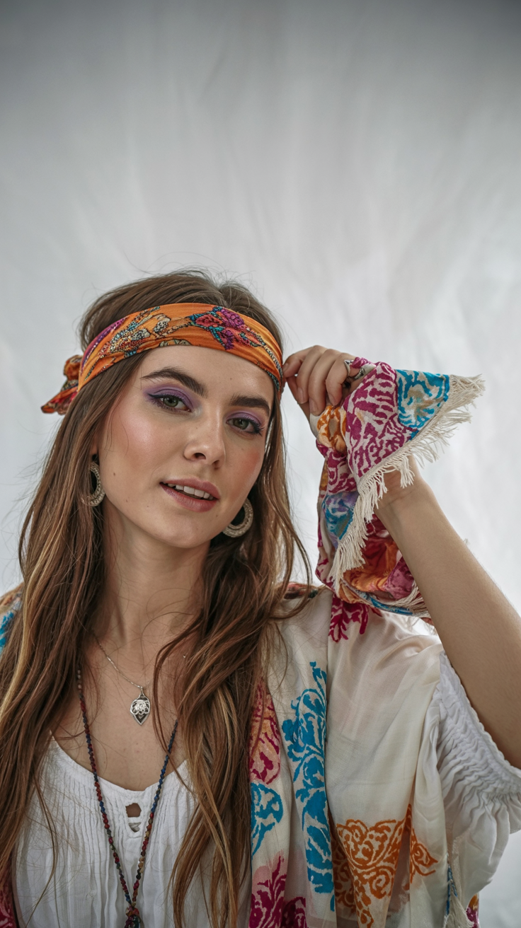 The style is fantastic when you possess long straight hair or even black natural hair that you would wish to keep away the face. The scarf carries the heavy lifting in that it adds character without much effort. It is ideal because it allows women to switch their vibe in a short time, transforming a simple everyday look into something daring, confident, and festival-ready.