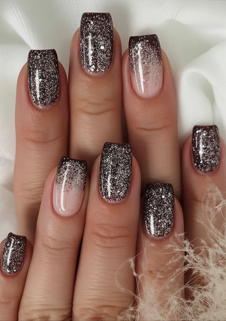 This appearance is great when women wish to be elegant and a little bit dramatic. The square form makes the style useful and the silver glitter sprinkles a gentle shimmer that compliments both shorter and longer nails. Simple to maintain and with a nice top coat, it suits anyone who is in need of ideas that are easy to wear on a daily basis but at the same time are fashionable enough to attract compliments at all holiday events.