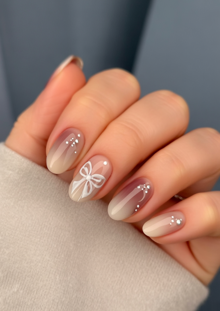 Sweet yet sophisticated, this design feels like a delicate gift wrapped just for you. The soft ombre effect transitions seamlessly from natural beige to light pink, topped with a tiny white bow and dainty dots. It’s romantic, feminine, and perfect for anyone who loves a little touch of art in their look.