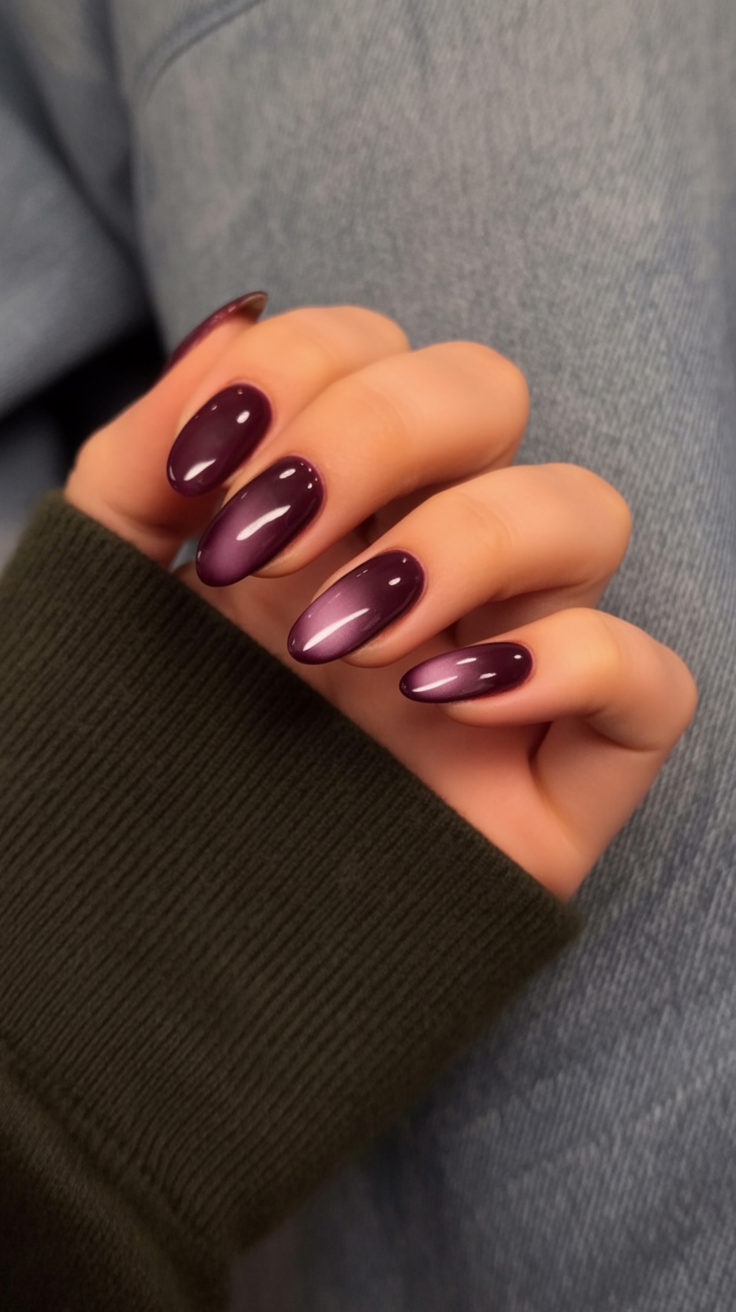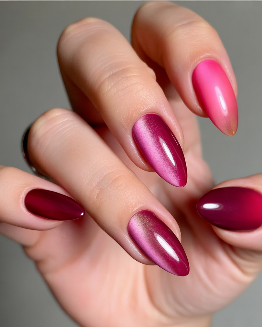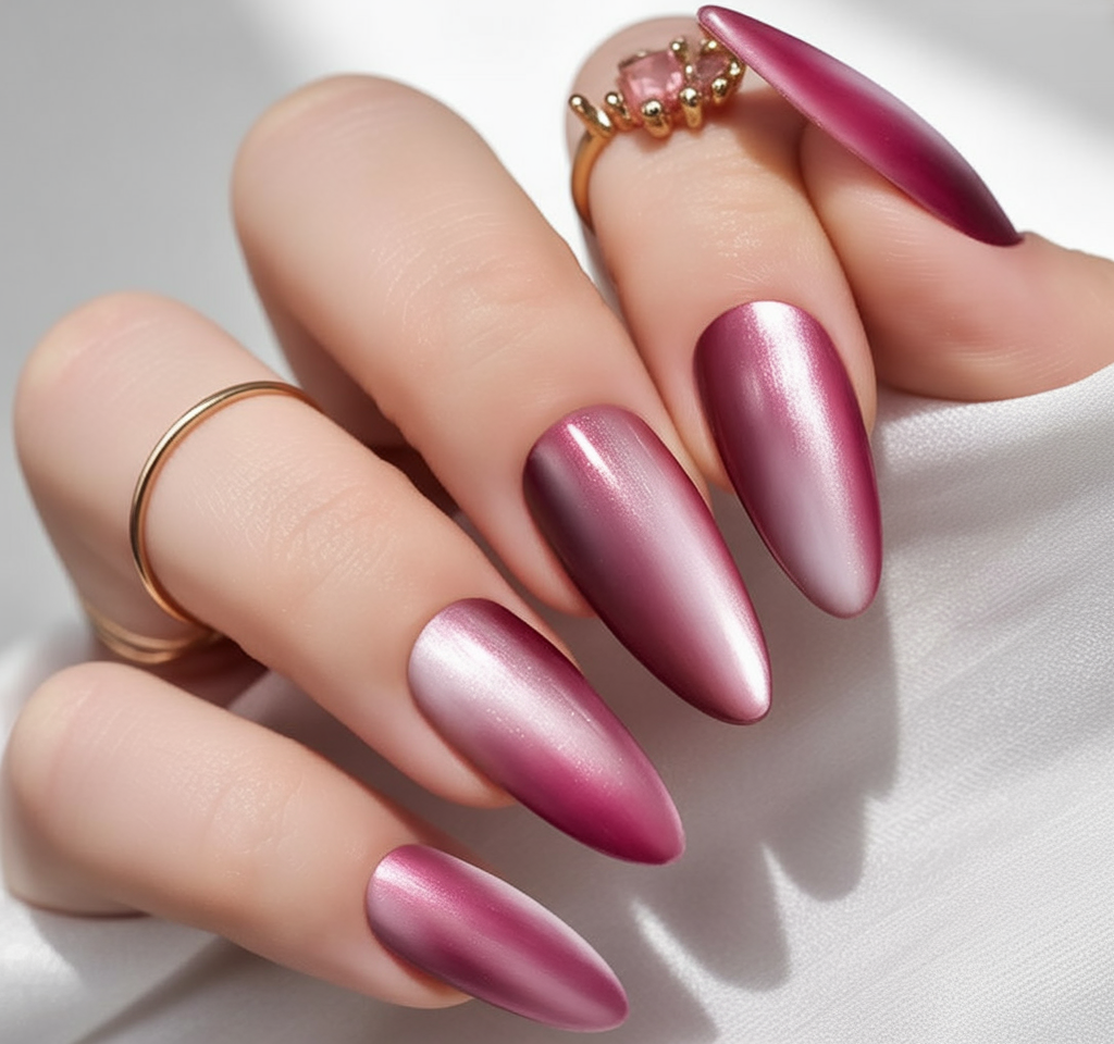 When you want to feel both romantic and powerful, these ombre cat-eye nails deliver just that. The transition from light pink to deep burgundy creates a magnetic depth that’s both soft and dramatic. It’s a statement without being loud—mysterious, confident, and undeniably elegant.
