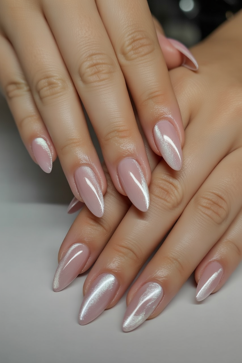 Soft, graceful, and endlessly chic—this cat-eye nail design captures the essence of understated elegance. The subtle light pink shimmer gives a modern twist to a timeless neutral polish, creating a polished yet effortless look that whispers sophistication rather than shouting for attention. It’s that perfect everyday sparkle that works for brunches, meetings, or a quiet glass of wine at home.