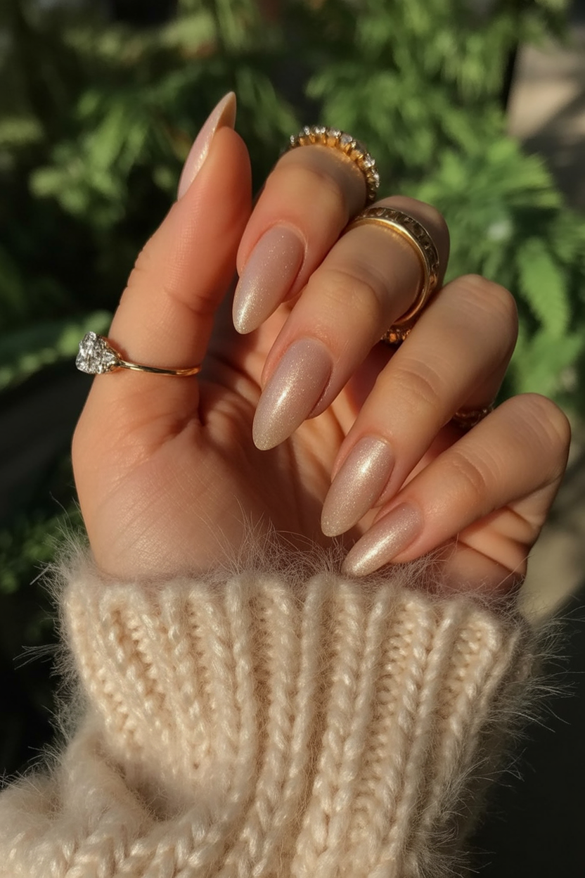 Ideal for anyone who prefers neutral tones but wants a touch of sparkle, this design flatters every skin tone and nail length. It pairs beautifully with cozy knitwear in cream or beige and looks stunning with gold rings. The polish’s fine texture ensures it stays chic for weeks, making it a top pick for both everyday wear and special occasions.