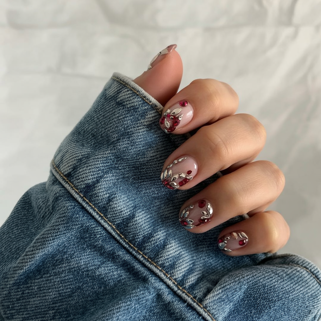 These silver- and red-topped nails are total baddie vibes—fearless, fearless, and unfazed. They feature gems that reflect light just like tiny balls of light, with deep ruby undertones that come across as unapologetically glamorous. They’re fearless but not obnoxious, sexy but effortless—just the sort of look that gets heads turning with a flick of a hand.