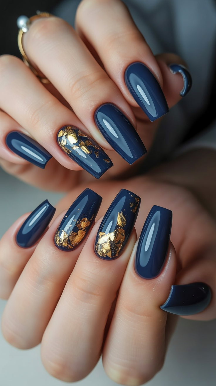 Best suited for almond-shaped medium nails, this look pairs gentle hues with strong metallics perfectly. It’s a low-key style that translates across seasons, effortlessly going from summer to autumn. Keep the shape rounded and use a thin coat of clear topcoat weekly to preserve that fresh-from-the-salon glow. A great choice for a person who believes in subtle confidence with style.