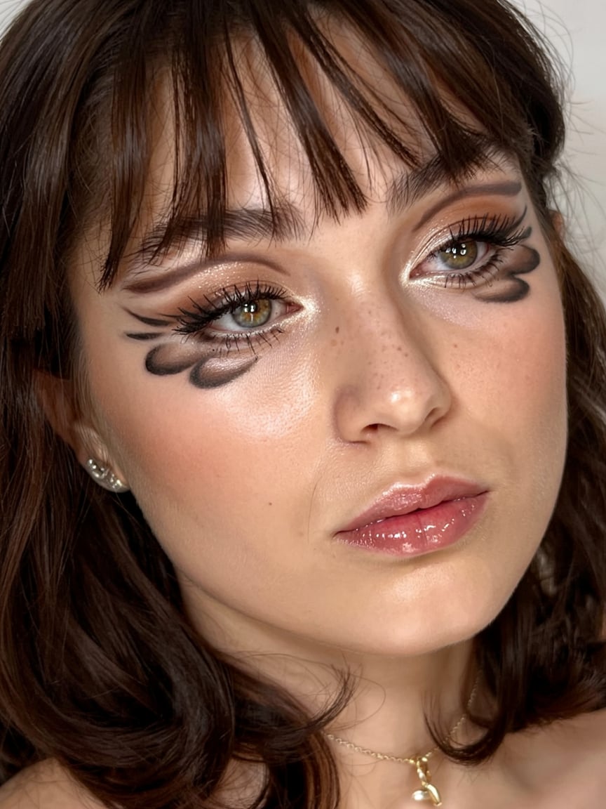 This one is great for makeup lovers who enjoy creative expression but want to skip the fake blood and heavy contour. Works best on smooth skin and almond or wide-set eyes. To enhance the illusion, use cream-based products and finish with a dewy setting spray.