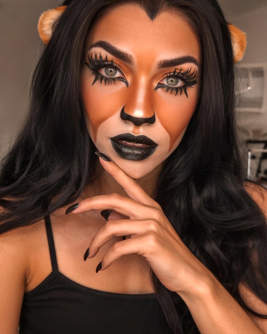 Sleek, fierce, and full of attitude — this fox-inspired face is both playful and fashion-forward. The use of deep contouring in orange and white, paired with hyperdefined eyes and lashes, creates an illusion that’s both animalistic and runway-worthy. It’s a confident twist on maquillage halloween 2025 that turns heads without saying a word.