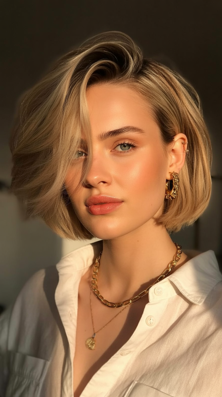 This haircut has that effortless elegance that makes you look twice. It feels light, modern, and quietly confident, with a soft brightness around the face that instantly freshens your overall look. There’s a calm sophistication here—polished but never stiff—perfect for women who like their style refined yet relaxed.