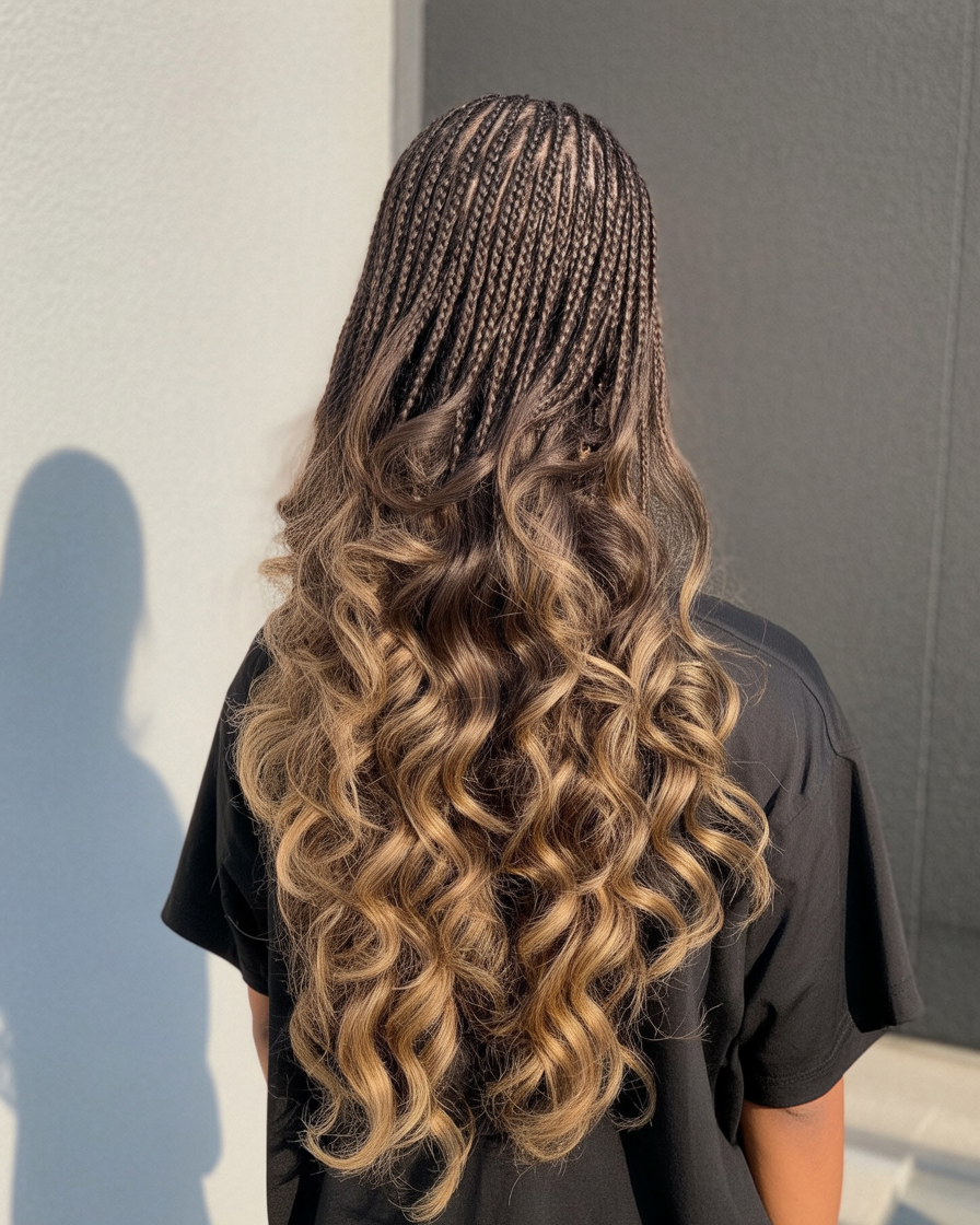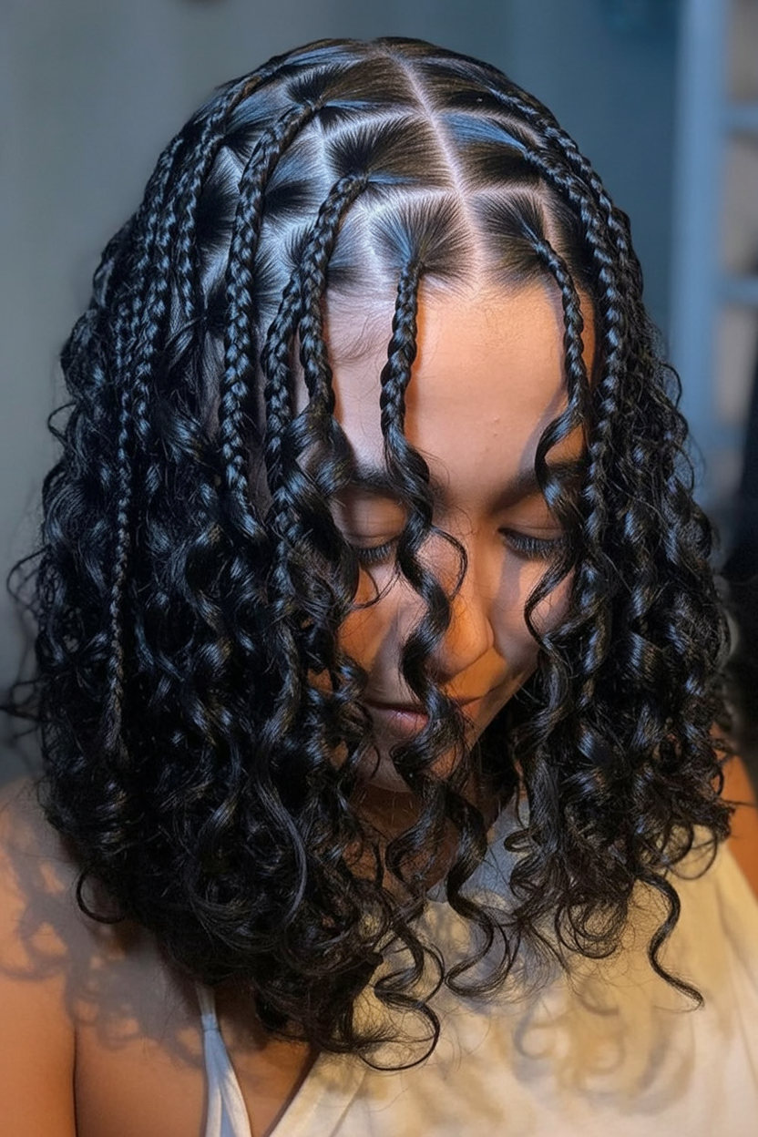 This combination of braids is the best fit of thick, black, or coarse hair texture as you can bring out the versatility of your natural hair. It is easy to maintain after styling and has a great appearance with earrings and carrying a leather jacket. It is the best final self-expression step to winter 2025.
