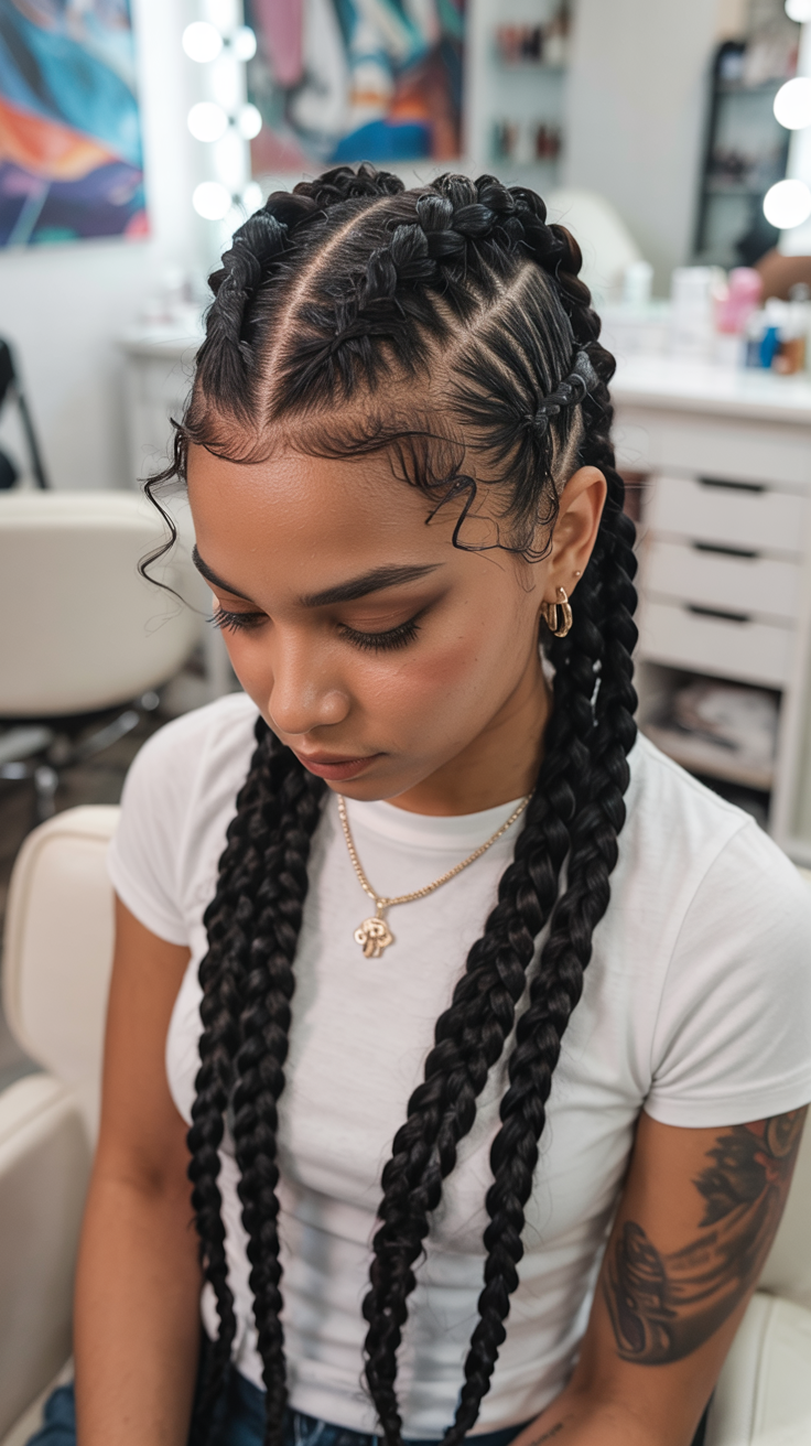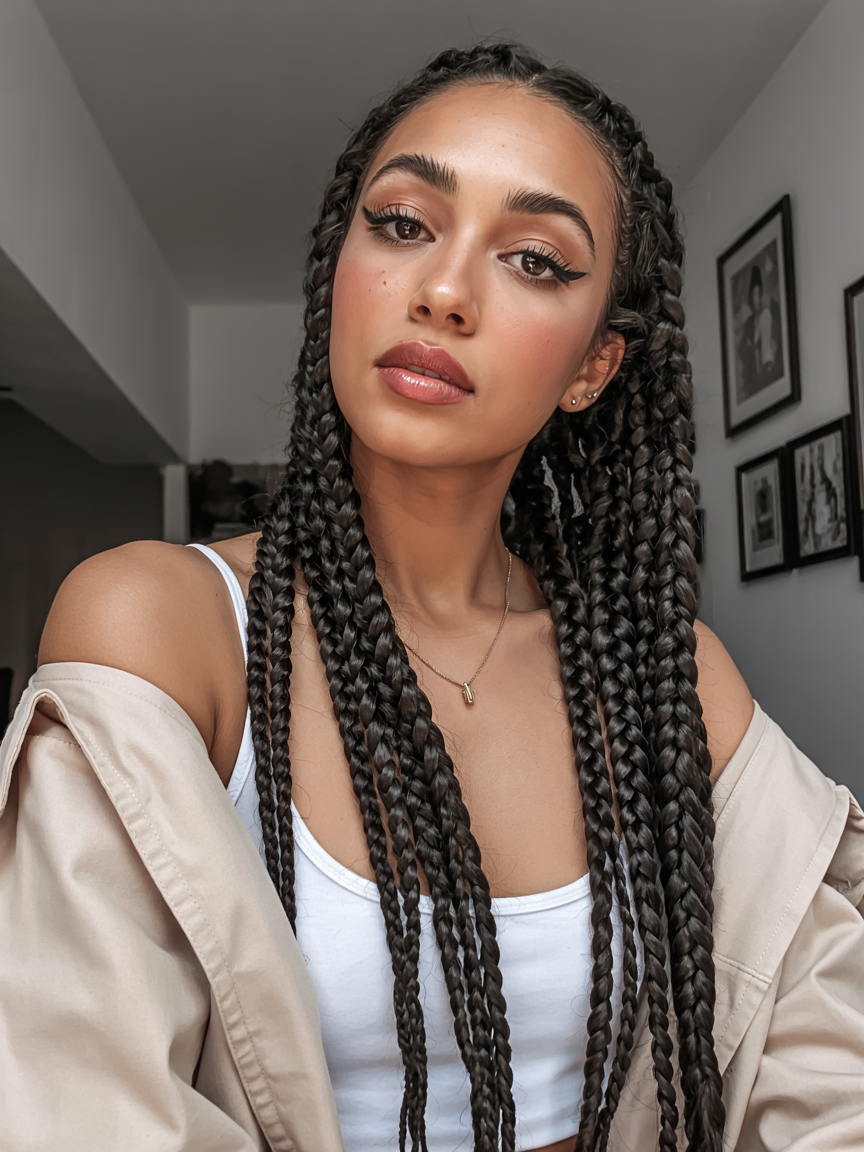 This is an ideal appearance when you have natural hair and protection styles, particularly during cool seasons when your hair requires special attention. These braids save them the time spent daily on manipulation and retain moisture, so it is ideal when one is on the move or just needs a break after heat styling. Top it all with light oil to provide shine and care the scalp – and expect praise.