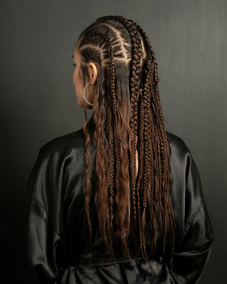 This appearance is perfect to any person who wants to experience the world of color but feels not sure about dyeing his/her original hair. It is also most effective on medium to thick textures and is compatible with protective braid maintenance regimes – consider using scalp sprays, satin wraps and weekly oiling. Ideal to add shine to gray skies and gray hair as well.
