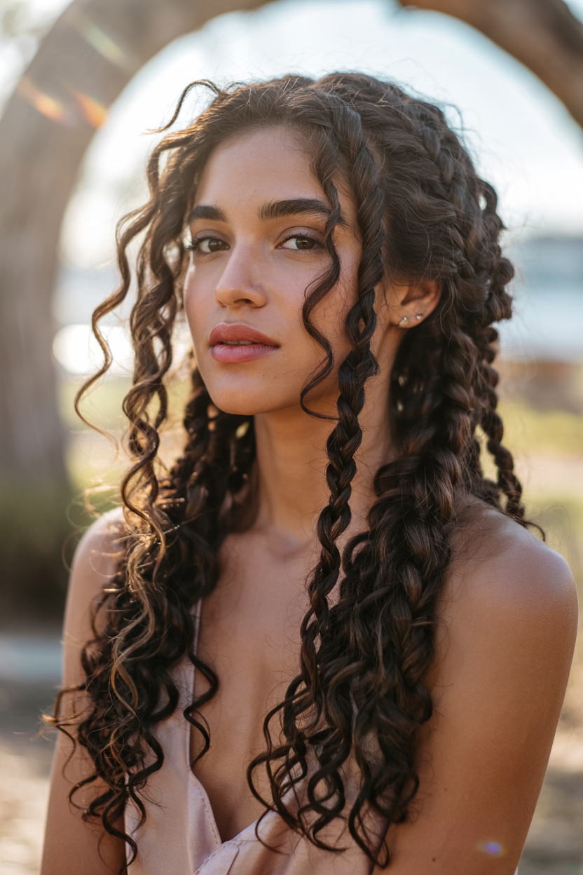 It is an excellent choice when it comes to thick curly hair or when it comes to people with extensions. Braids up top help control volume, while the loose curls below add movement. It is a fashion that dares to dance, layer, or even exercise- simply wear the hair jewelry and become your bravest self.