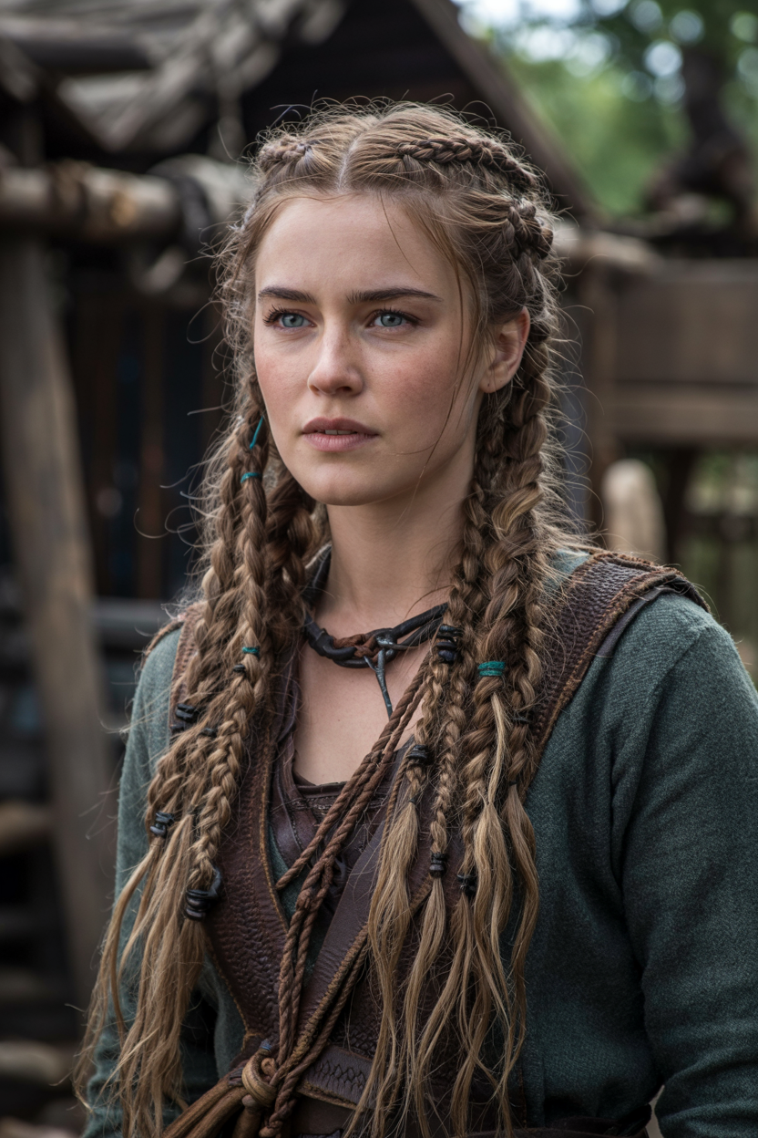 You have long locks and need some order in your messiness, this combination of the braids is what you wear in winter. It stands beautifully in the wind and weather, and the combination of rope and twist braids are dimensional. Wear it with leather or fur and you have a costume -and a manner.