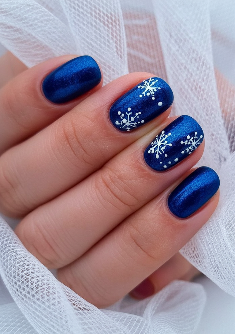 This idea is extremely charming for winter short nails, showing that you really do not need to be long to make their presence known. The design goes for something neat and simple while embracing the winter snowflake types. A thin-layer glossy top coat will surely preserve that icy effect and keep your nails looking fresh throughout the season.