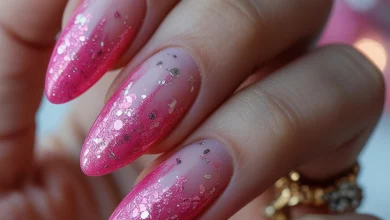 This style works beautifully for almond nails or anyone who wants to elongate their hands visually. It’s a chic choice for special occasions or nights out, and it’s surprisingly easy to maintain. Just reapply a thin layer of clear top coat every few days to keep that sparkle alive.