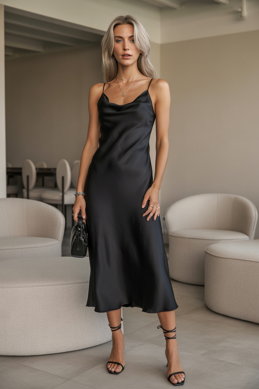 What makes this cut of dress so special in 2025 is that it is so versatile. You can wear it under a blazer to create a simple chic women look, or wear it as-is and pair with strappy sandals to create a minimal vibe. It suits every age, though in women over 50 it is a gorgeous means of understated glamour without overdressing.