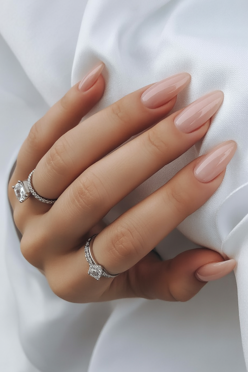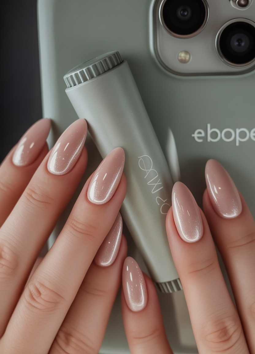 This design shows nails and never goes out of style. Looking clean and glossy, almond-pink nails give a fresh, polished look and exude confident vibes. No extra details, no distractions, just smooth perfection that instantly makes your hands look cared for and elegant.