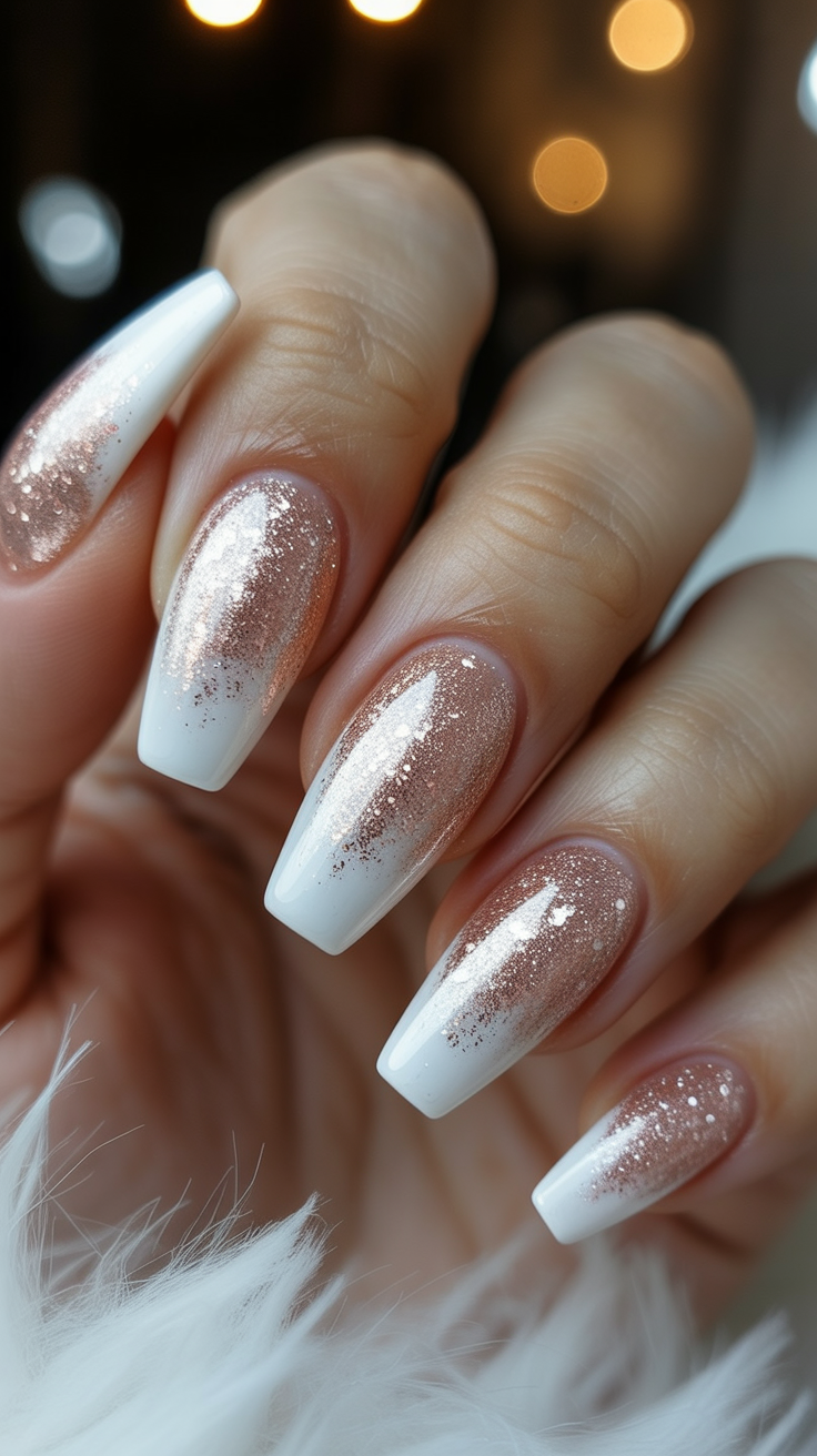 A look like this is soft and sweet, but there is something subtly seductive about it too. A mix of soft nude and sparkling glitter tips oozes sophistication and is a good representation of modernity. This mix is great for a casual or dressed look. This is a perfect look whether you are going all out or keeping it low-key.