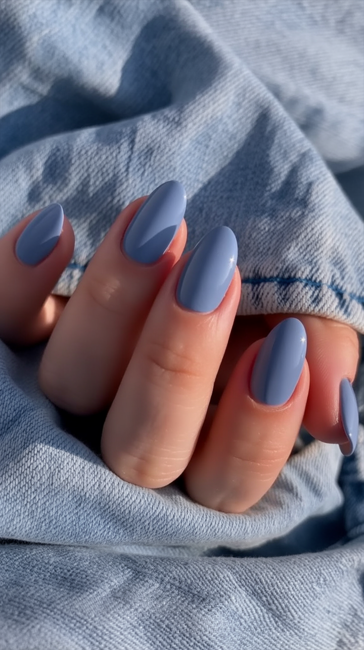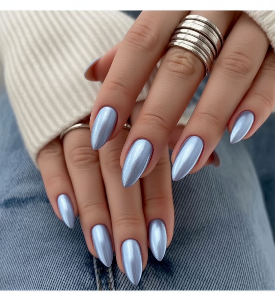 There’s something instantly soothing about this look. The smooth almond shape and muted blue tone create a sense of balance and quiet confidence. It’s modern without trying too hard, and it feels refreshing in a sea of neutrals.