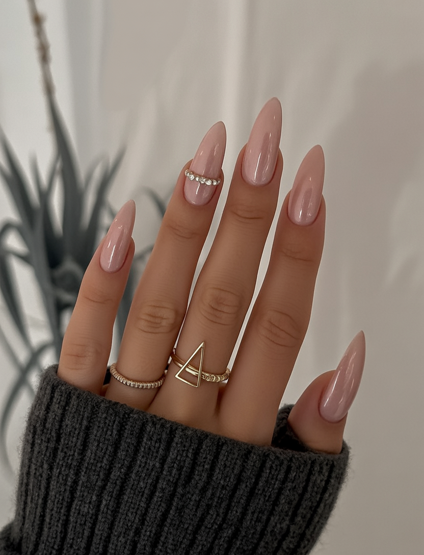 These nails match every scenario—definite winner. Almonds are flattering and strong. The soft pink shade works with every outfit and every emotion. It’s a style that speaks of ease and confidence, proving that sometimes the best ideas are the ones that are the most simple.