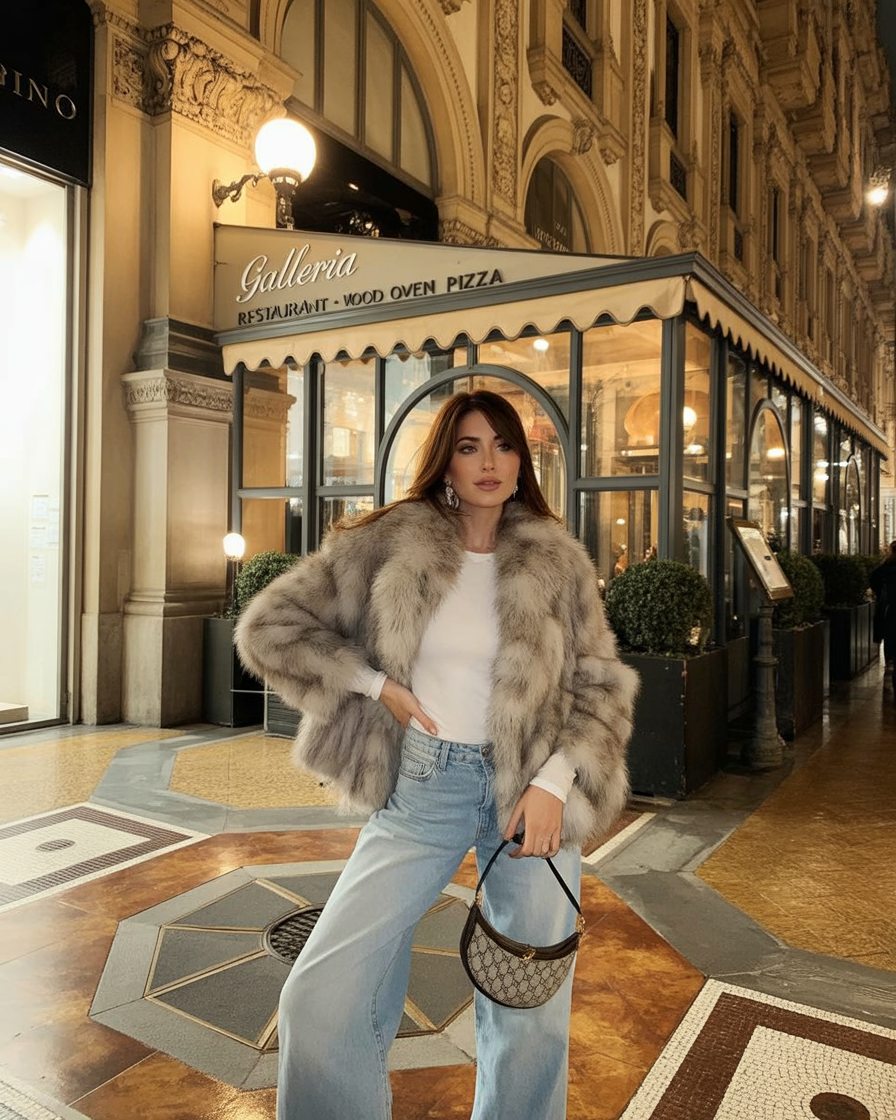 Turn heads, drop jaws—that’s the mood when you step out in this glamorous faux fur jacket. The volume, the softness, the full movie star energy—it’s all here. Styled with wide-leg denim and a clean white top, it strikes a balance between vintage diva and modern Y2K-meets-Milan vibes.