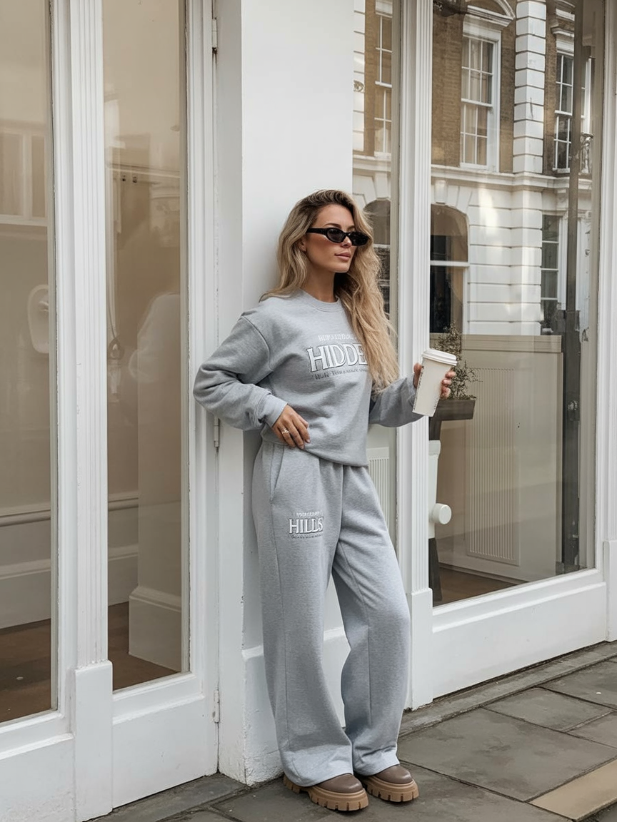 What sets this apart is how well it balances comfort and practicality. It’s great for school runs, casual workdays, or even travel. The sweatpants silhouette offers freedom of movement, while the matching top keeps things cohesive. Add chunky shoes or sneakers, and you’re ready to go. This is one of those easy outfits you’ll reach for again and again, especially during busy weeks when comfort is non-negotiable.