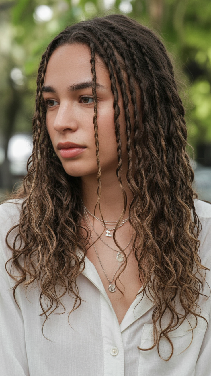 This style is lovely on longer, medium or naturally wavy or curly hair, particularly, when you have body to work with in the shape of your hair. It is a great choice, in case you are in a mood to have something very easy all, but not too much-with just a hint of chic in it. To give them that extra shine serum or leave it matte to give off that more boho feed in the braids vibe.