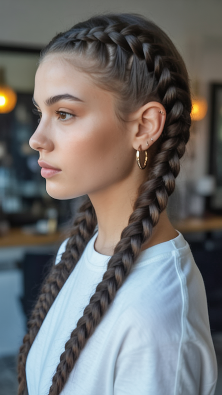 This is a simple all solution that is beautiful and can fit almost any lifestyle in case you have straight or slightly wavy natural hair. It is very good at school, gym day or hidden under a hat on weekday errands. And if you’re growing out layers? These braids will keep everything smooth and under control.