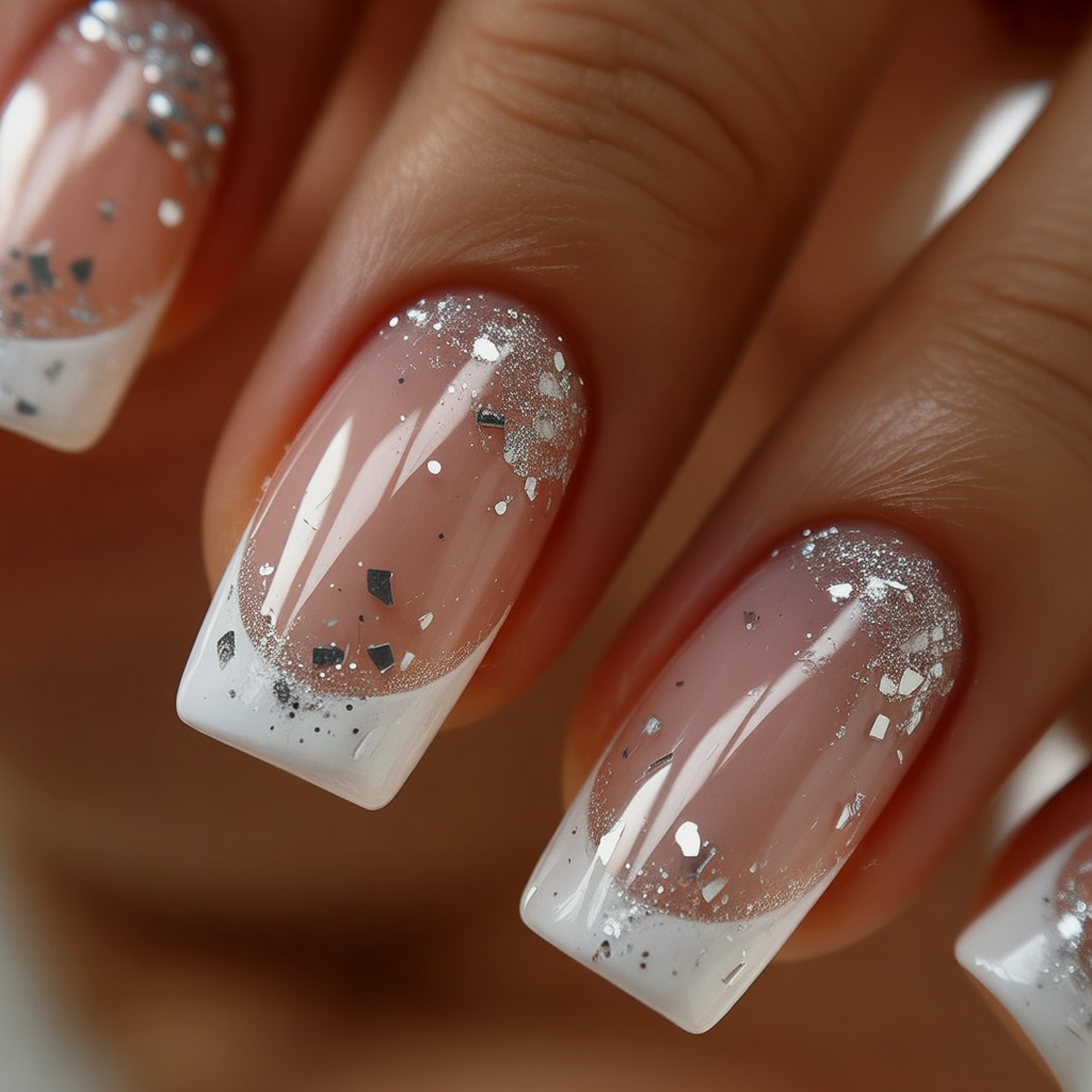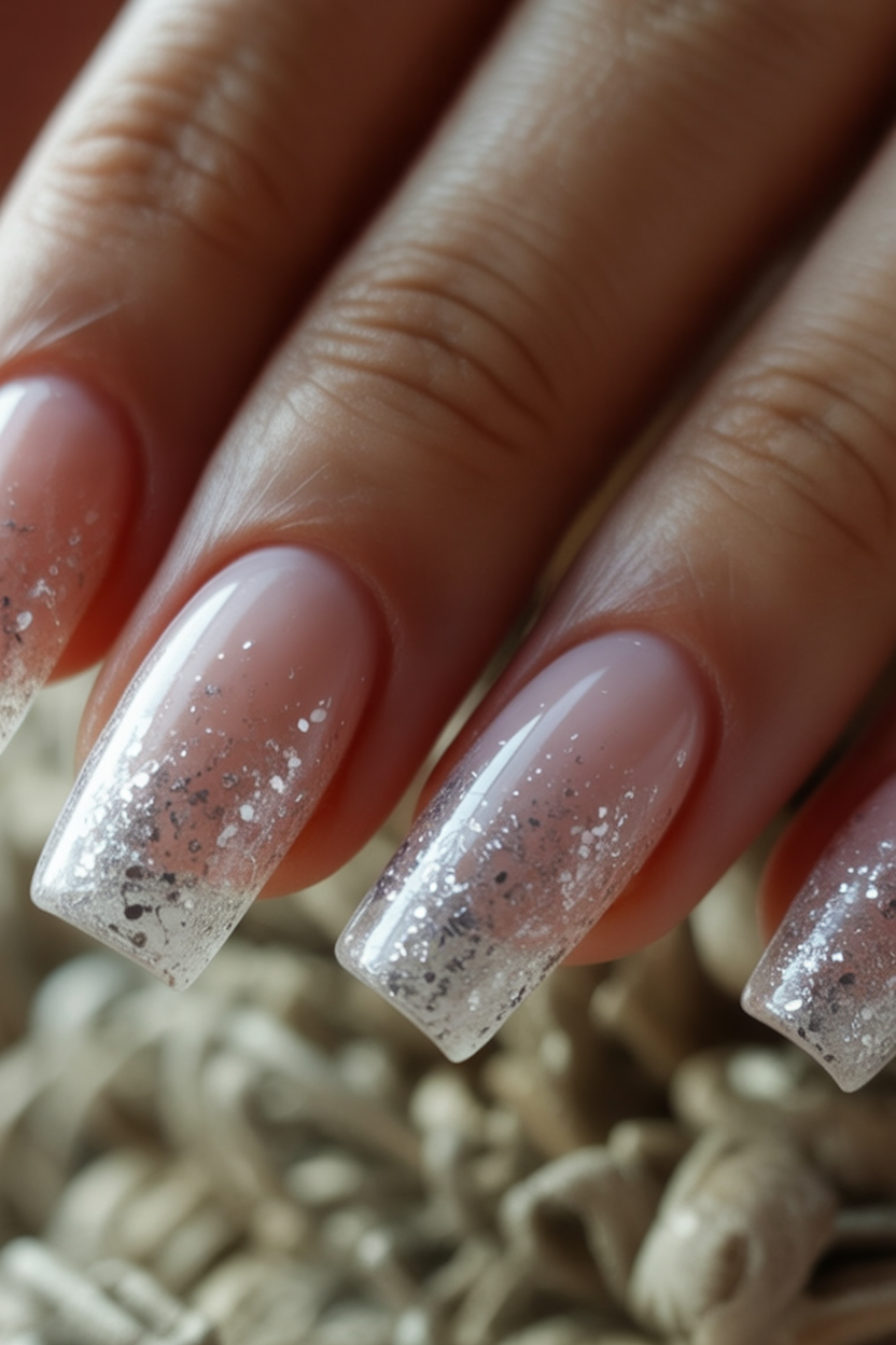 This design is soft and yet stylish and friendly. The fine texture of silver glitter resembles the morning frost on a smooth blush foundation and it is ideal to wear on everyday with a slight glamour. It is sophisticated, simple to like, and it never gets excessive.