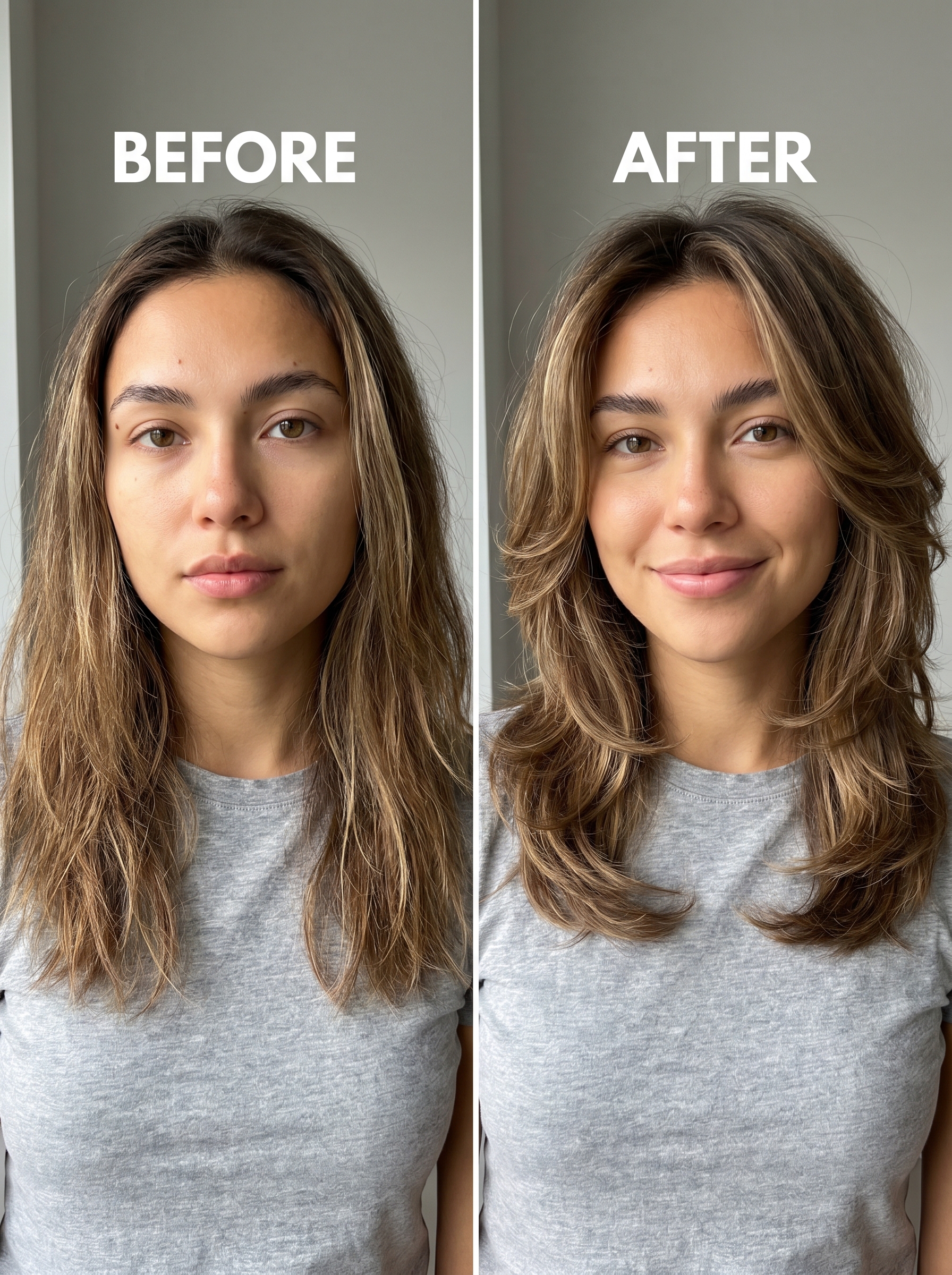 This is a chic, vintage, and polished look perfect for work, date nights, or cocktail parties, achieved with a strategic combination of products totaling $51.23. The style, as pictured, features long, flowing honey blonde waves with a soft transition from a warmer root tone to lighter, brighter ends. It has a center part and a high visual volume, especially around the face, with the waves starting around eye level and continuing to the ends. To prevent frizz and ensure a sleek finish, especially in humid conditions, I always run an oil from glossgenius.com ($23.74) through damp hair, focusing on the ends. After styling, a light spray from Ulta Beauty ($24) provides flexible hold without stiffness, perfect for maintaining the rounded silhouette of these waves.