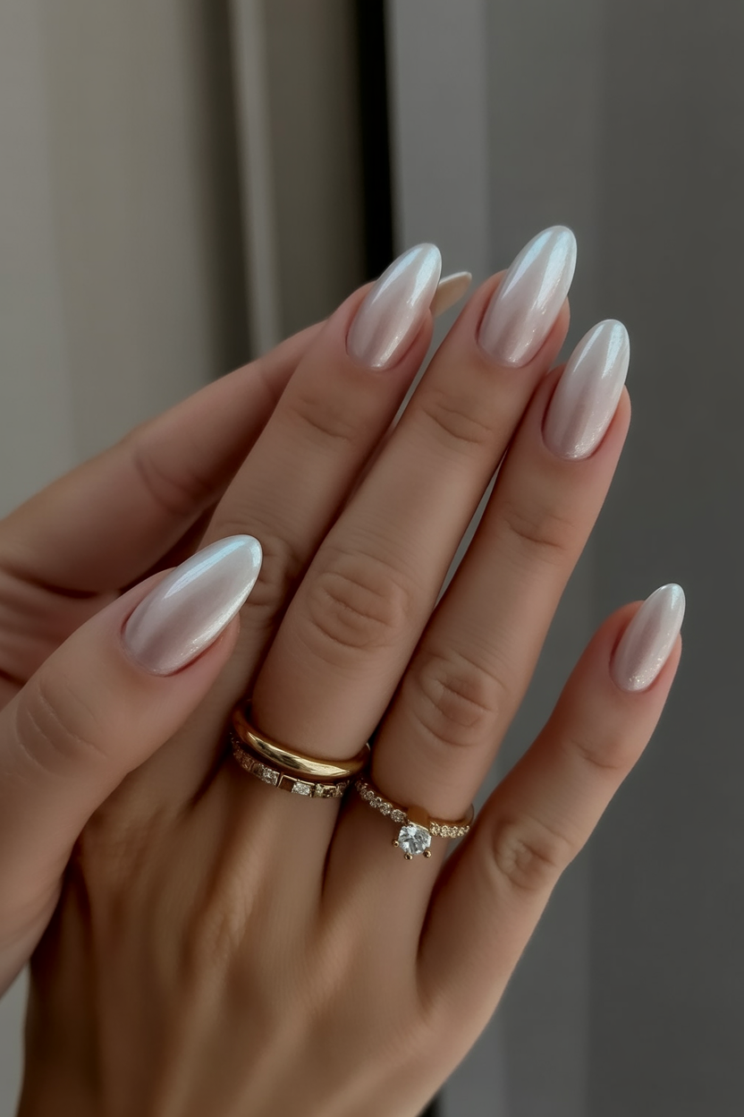 Such lengthening allure would bevery much suitable for almond-shaped fingers, which seem more elongated but still slim. For quite small nail beds, these shimmer nails will produce an appearance of fullness and glowy effect. Always keep your cuticles moisturized and stay awestruck at how effortlessly these nails would complement an outfit of cozy knits or pearl earrings.