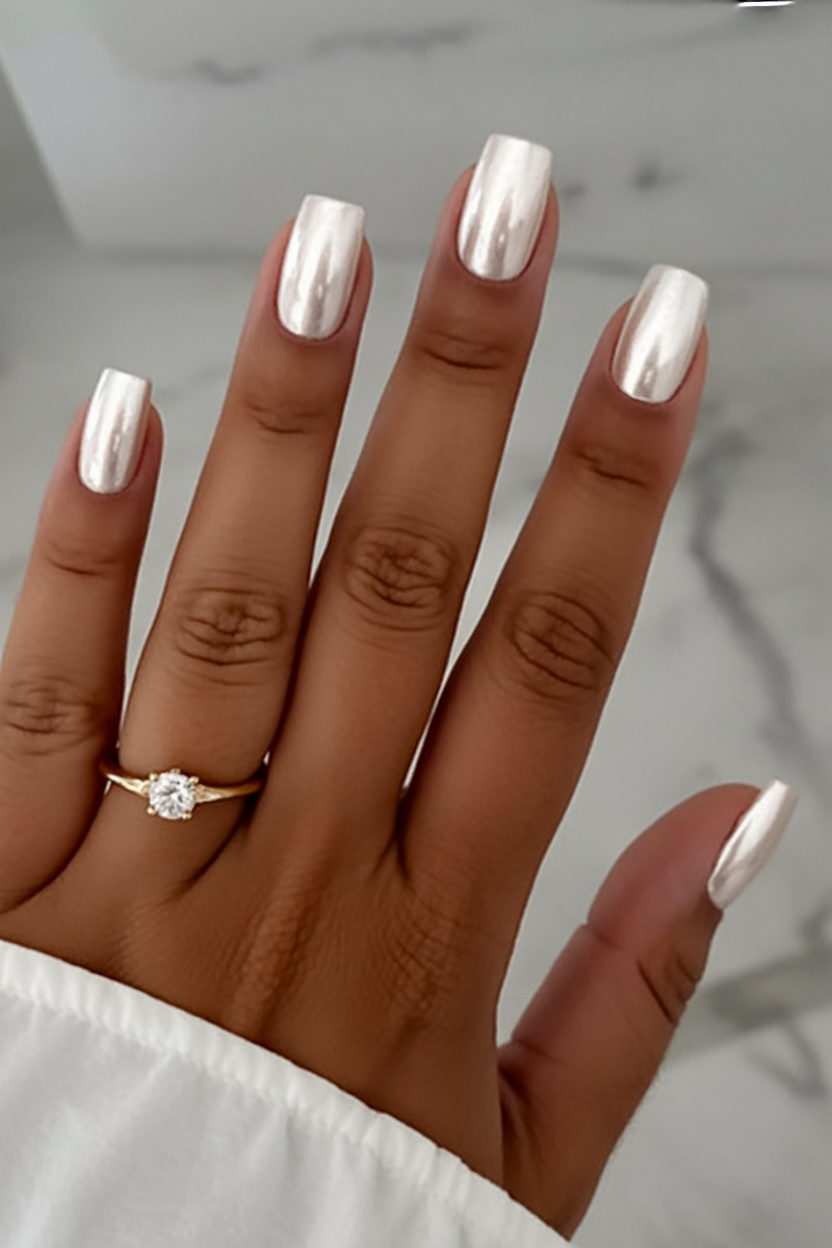 These iridescent pearl nails are pure understated elegance. The soft white base shimmers with a pearly glow that catches the light beautifully, adding depth without being overpowering. It’s a versatile look that transitions seamlessly from everyday wear to special events.
