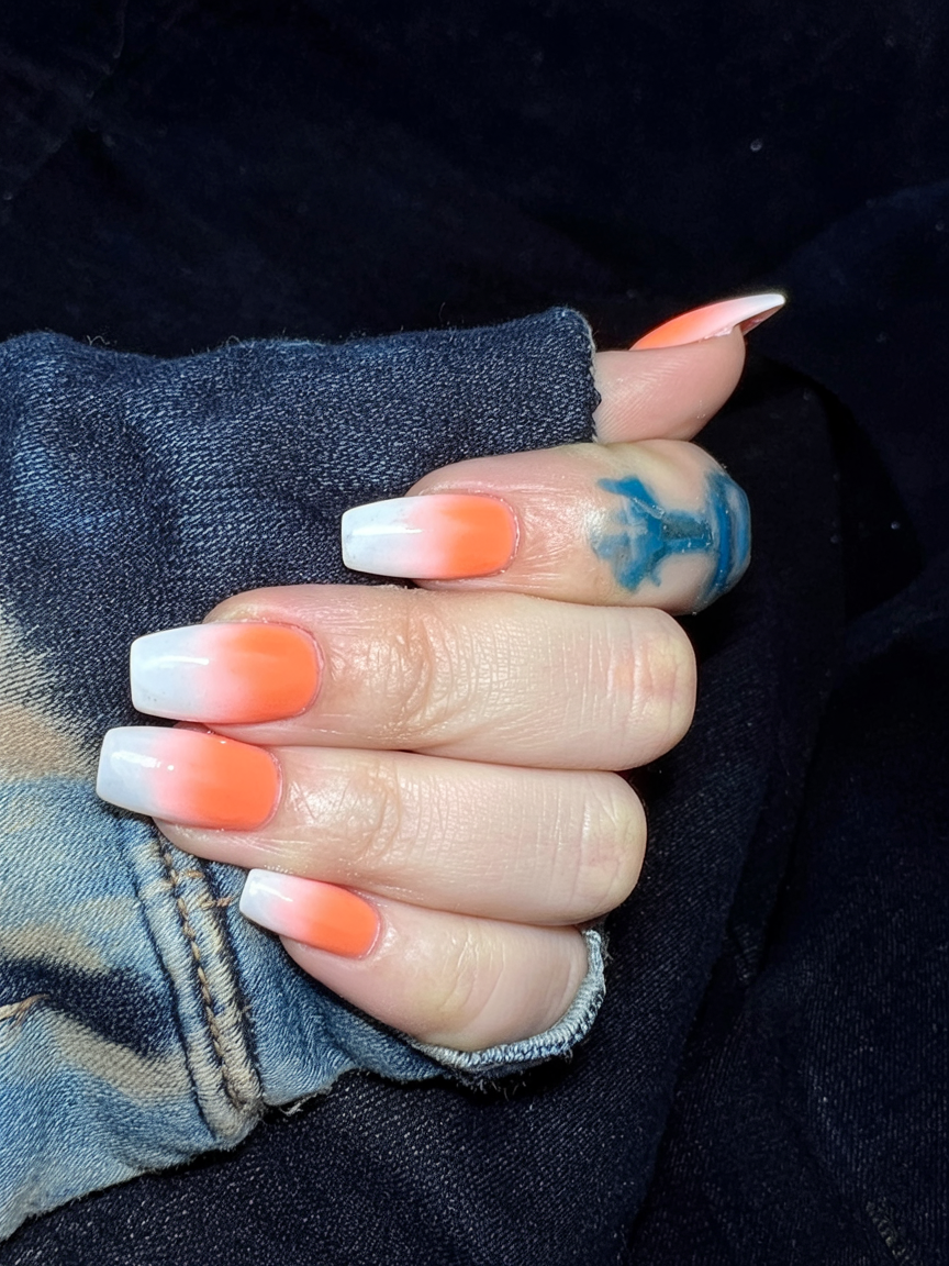 Juicy orange melts into milky white like a pumpkin creamsicle — playful, bold, and full of fall charm. It’s youthful without being childish, and gives major cozy hoodie and hayride vibes.