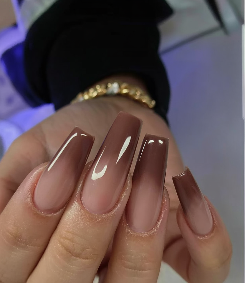 This color suits any skin shade and any possible nail length which makes it perfect to use on fall ombr nails 2025. This mani works no matter what plans you have, whether you need to head to the office or go out to dinner, you will feel the most put-together you.