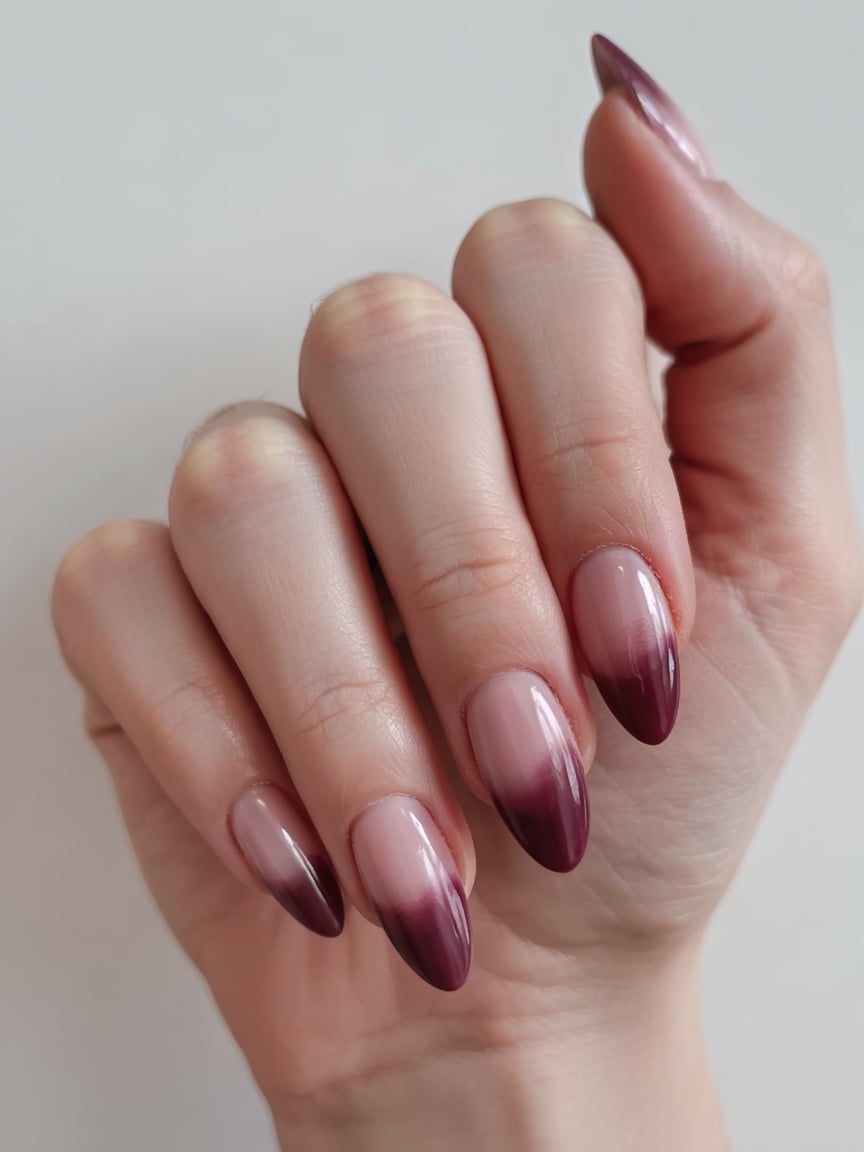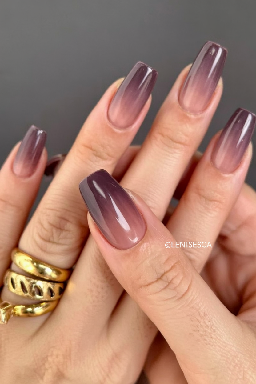 There’s something undeniably cozy about this soft plum-to-nude transition. It is like your favorite, baggy oversized sweater which is easy to wear, classy, and stylish and fits on a clear, golden afternoon. The shiny finish is not too eye-popping but with a touch of that polish this look is ideal not only when one wants to dress up and have a quiet date over coffee but is also ideal during a casual outing during fall.