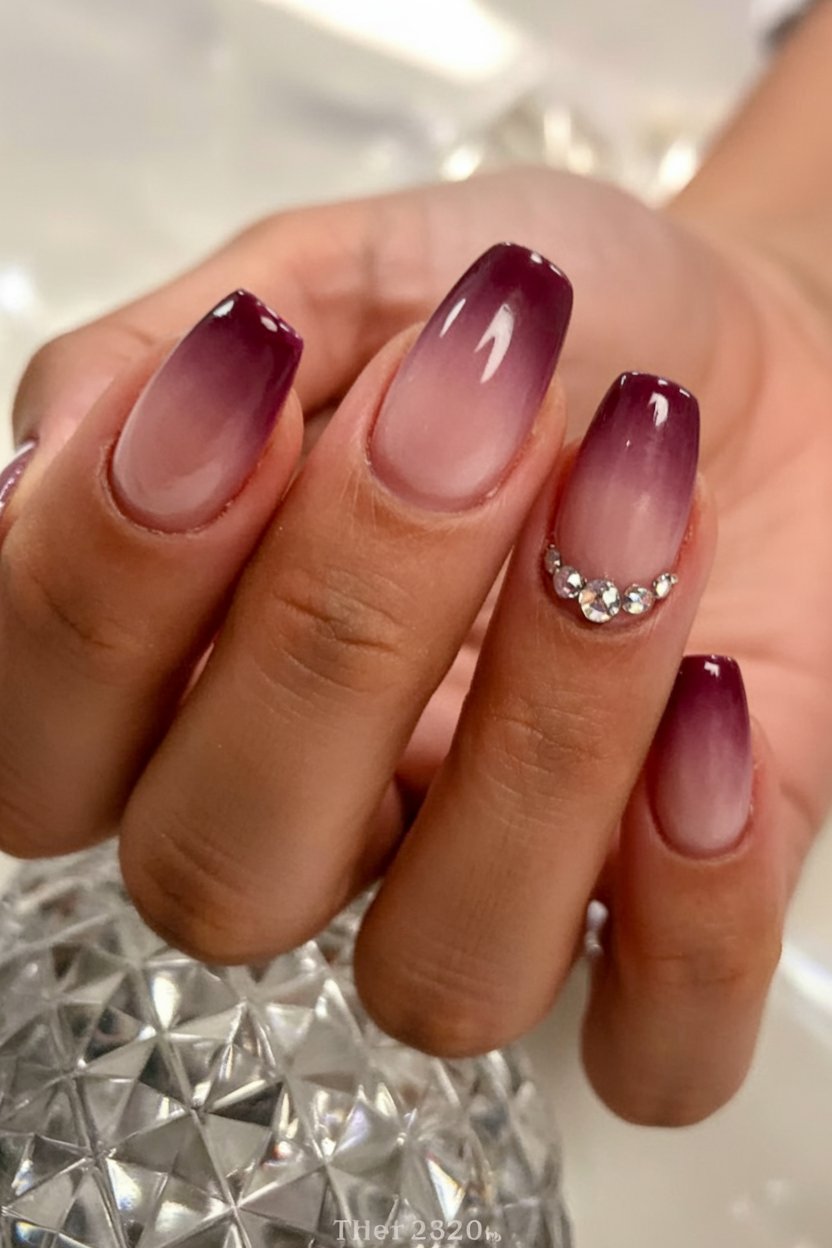 Deep burgundy fades into a light foundation that looks like a curtain is sliding on a velvet autumn evening. And that touch of rhinestone detailing? Pure glam. This expression is theatrical, sexy and somewhat pretentious in the most positive sense of this word.