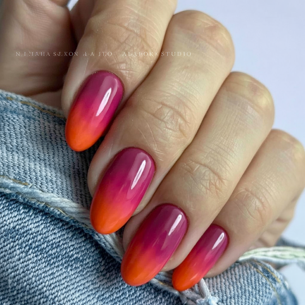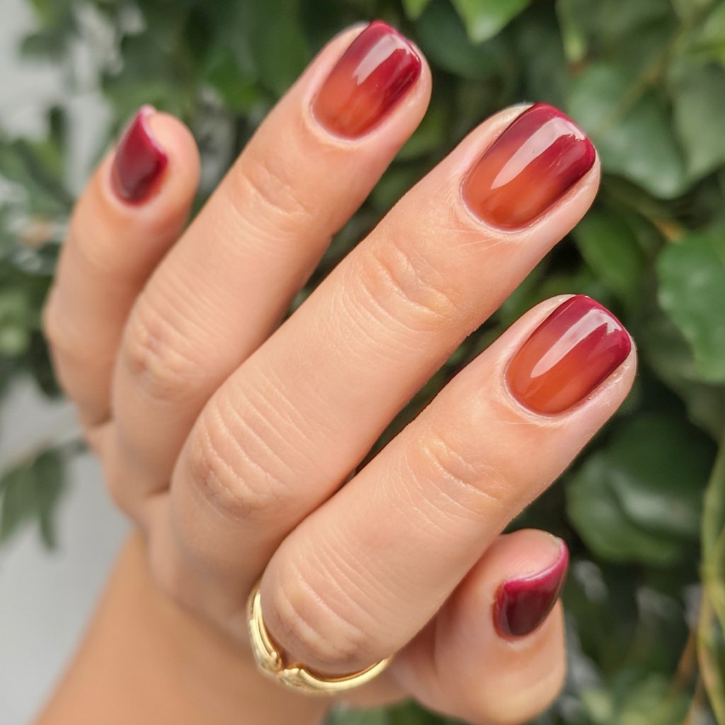 Think of all the coziness of the fall foliage in a manicure, and you will get a picture of how rich this amber to berry ombr hasn occurs. It is warm, spicy, and a bit out of control-like sitting next to the fireplace with a glass of red wine after going on a brisk walk in the forest.