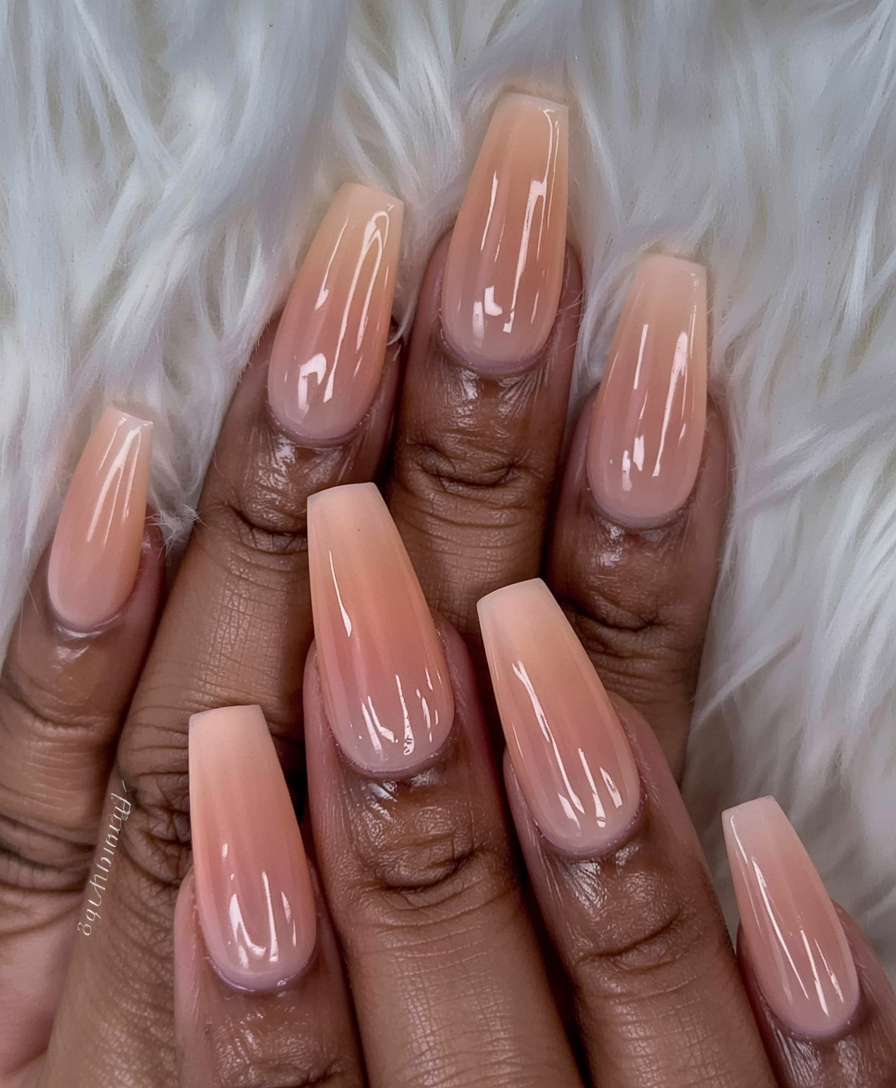 Understated and sleek, this taupe-to-clear ombré gives all the cozy neutral feels with none of the fuss. It’s refined, soft, and makes you look instantly pulled together — no bells or whistles needed.